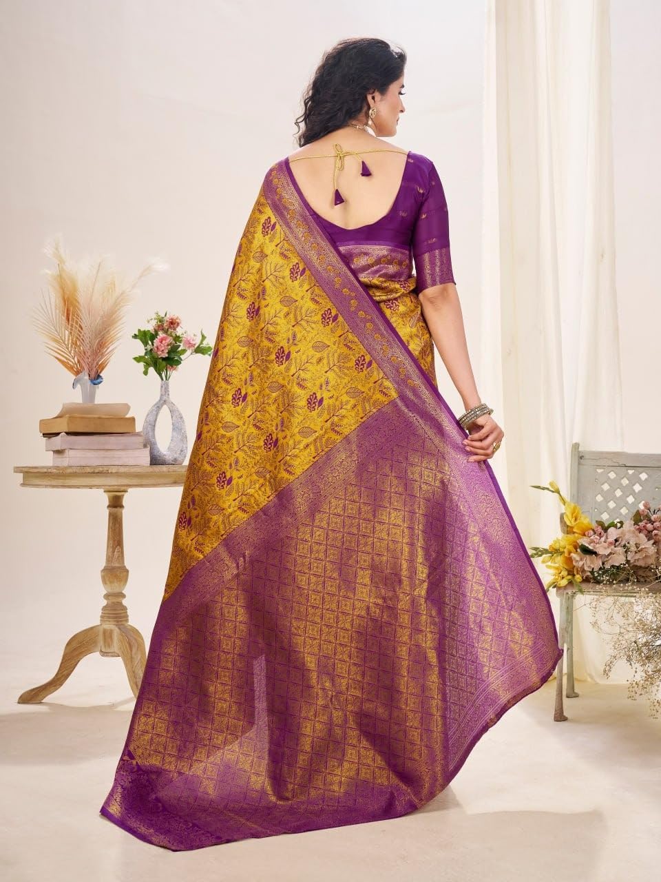 | Style Number | Mustard & Purple Saree Banarsi Saree |