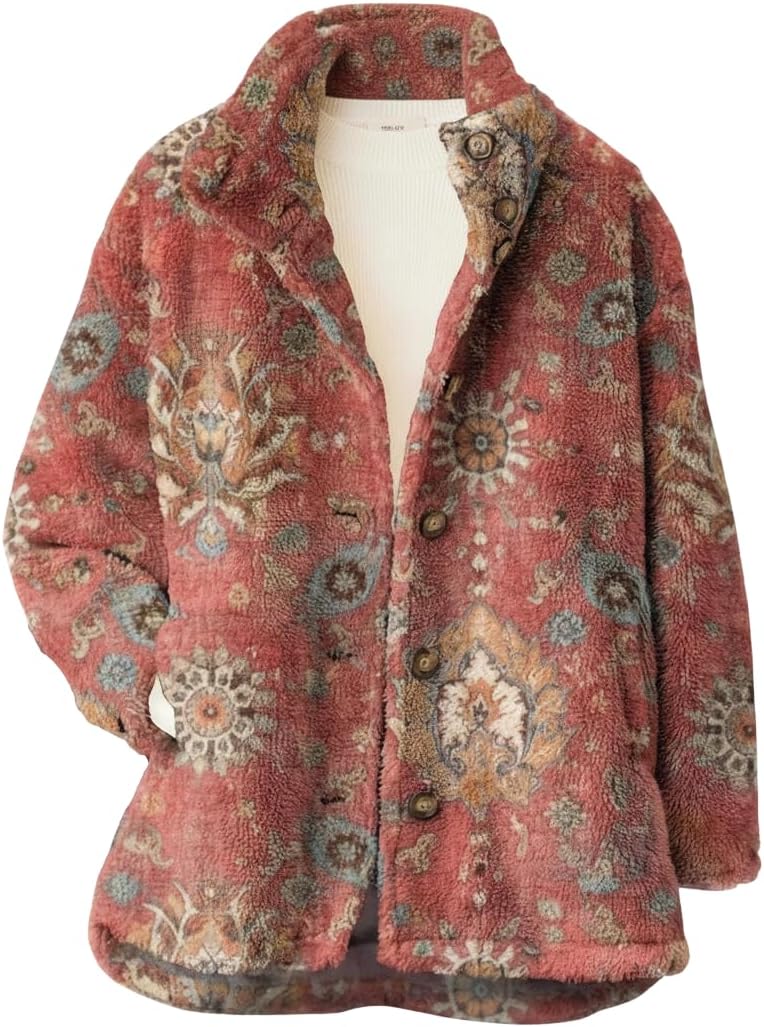 Unlock effortless style and cozy comfort with our Boho Print Flannel Jacket, designed for women who value both fashion and function. The thoughtful details - from the stand collar and button-front closure to the practical pockets - combine to create a jacket that's as practical as it is stylish. Choose from an array of beautiful vintage prints that capture the free-spirited essence of boho fashion. Each pattern tells its own story, from delicate florals to bold western motifs, ensuring you'll find the perfect expression of your personal style. Whether you're running weekend errands, meeting friends for coffee, or enjoying a crisp autumn day, this versatile jacket provides just the right amount of lightweight warmth. The plush lining feels luxurious against the skin while the relaxed fit allows for easy movement and layering. It's the perfect gift for any woman who appreciates comfortable, stylish clothing that transitions seamlessly through seasons and occasions.