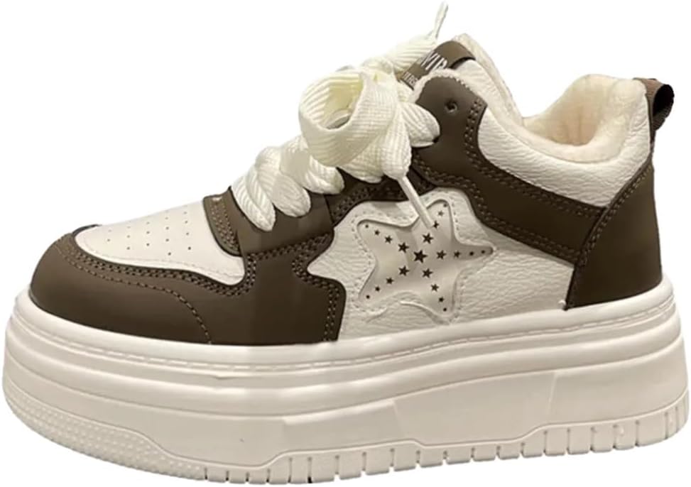 Women's Chunky Platform Sneakers Y2K White Lace-Up Star Shoes Cute Casual Walking Shoes for WomenStep into a world of nostalgic charm and confident style with our Women's Y2K Star Chunky Platform Sneakers. Designed for the fashion-forward individual, these white shoes blend the iconic aesthetics of the early 2000s with modern comfort and durability, making them a standout addition to your footwear collection.A Nod to the Past, A Step into TodayOur sneakers capture the essence of Y2K fashion—playful, bold, and unapologetically fun. The signature star accents aren’t just a design; they're a statement. Whether you’re drawn to the cute sneakers for women trend or love the unique flair of star sneakers, this pair promises to turn heads and spark joy. It’s the perfect embodiment of Kawaii style meeting streetwear edge.Your Go-To Pair for Every Casual OccasionVersatility is key. These are the shoes for women sneakers enthusiasts who value adaptability. Dress them up with a skirt for a cute, retro look, or keep it cool and laid-back with your favorite jeans. They effortlessly fit into your life as the perfect ladies shoes casual option for school, work, travel, or weekend outings. Discover the perfect blend of y2k shoes nostalgia and everyday wearability.US Size 5 Foot Length 8.9 inches / 22.5 cm. EU Size 35US Size 5.5 Foot Length 9.1 inches / 23 cm. EU Size 36US Size 6 Foot Length 9.3inches / 23.5 cm. EU Size 37US Size 6.5 Foot Length 9.4 inches / 24cm. EU Size 38US Size 7 Foot Length 9.6 inches / 24.5cm. EU Size 39US Size 7.5 Foot Length 9.8 inches / 25 cm. EU Size 40