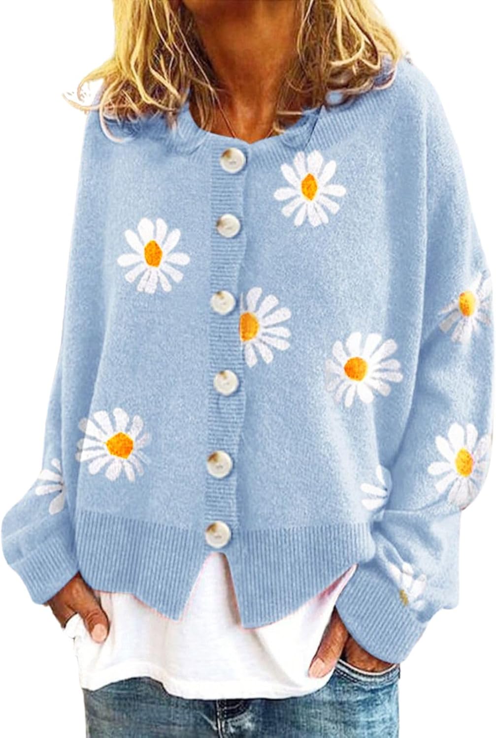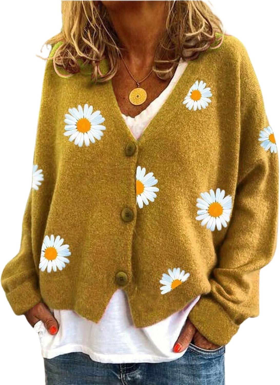 Welcome to DMOYALA Clothing Store! ➤➤➤ Product Information Product Name:Cardigan Sweaters for Women Age: Adult Pattern Type: Solid Color/ Daisy/ Love Heart/ Star Print Collar Type: V Neck Sleeve Length: Long Sleeve Size: S, M, L, XL, 2XL, 3XL Weight: 0.6KG Style: Casual Season: Spring, Fall, Winter Package Content:1 x Crop Cardigan Sweaters for Women Features: 1.It is made of high quality faux wool materials, durable enough for your daily wear. 2.Oversized graphic design makes you more attractive. 3.Casual and comfortable cardigan jacket that make you feel good. Warm Tips: 1. There may be 0.3-0.8 inch deviation in different sizes, locations and stretch of fabrics. Size chart is for reference only, there may be a slight difference with what you get. 2. Color may be lighter or darker due to differences in PC display. 3. Any question or problem? Do not hesitate to contact us! We wish you a super pleasant shopping experience!