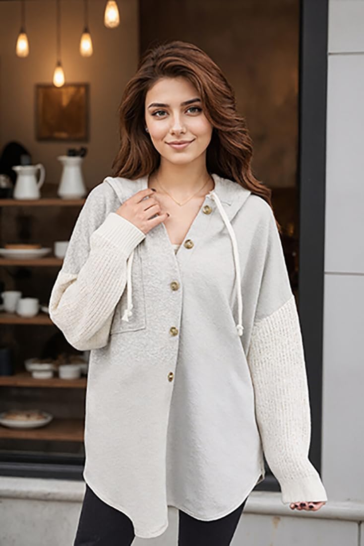 Womens Fall Oversized Sweater Hoodie with Long Sleeves Button Hood and Pocket