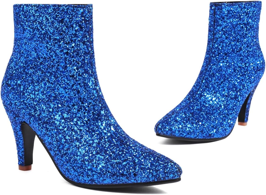 Women's Glitter Sequins Dressy Ankle Booties Pointed Toe Zipper Stiletto High Heels Wedding Party Short BootsSize Chart:Size 4 US = EU34 = Heel to Toe 22.0cm/8.66"Size 4.5 US = EU34 =Heel to Toe 22.0cm/8.86"Size 5 US = EU35 = Heel to Toe 22.5cm/9.06"Size 5.5 US = EU36 = Heel to Toe 23cm/9.06"Size 6 US = EU37 = Heel to Toe 23.5cm/9.25"Size 6.5 US = EU37 = Heel to Toe 23.5cm/9.25"Size 7 US = EU38 = Heel to Toe 24cm/9.45"Size 7.5 US = EU39 = Heel to Toe 24.5cm/9.65"Size 8 US = EU39 = Heel to Toe 24.5cm/9.65"Size 8.5 US = EU40 = Heel to Toe 25cm/9.84"Size 9 US = EU41 = Heel to Toe 25.5cm/10.04"Size 9.5 US = EU42 = Heel to Toe 26cm/10.24"Size 10 US = EU42 = Heel to Toe 26cm/10.24"Size 10.5 US = EU43 = Heel to Toe 26.5cm/10.43"Size 11 US = EU44 = Heel to Toe 27.0cm/10.63"Use your length and width measurements to find your shoe size on the above size chart. If your foot is fat or wide, please select a bigger size up.PERFECT ITEM FEATURES:☛Item Type: Ankle-boots☛Main Material: High Quality Fabric-and-synthetic upper; Comfort Microfiber Lining; Non-skid Rubber sole.☛Closure_type: Side Zipper☛toe_style: Pointed-toe☛Heel Height: Heel Height 3.35 inch☛Width: Medium (BM)☛Season: Spring/Autumn/Winter☛Color: Multiple colors optional☛Occasion Lifestyle: Fashion,Classic,Casual.
