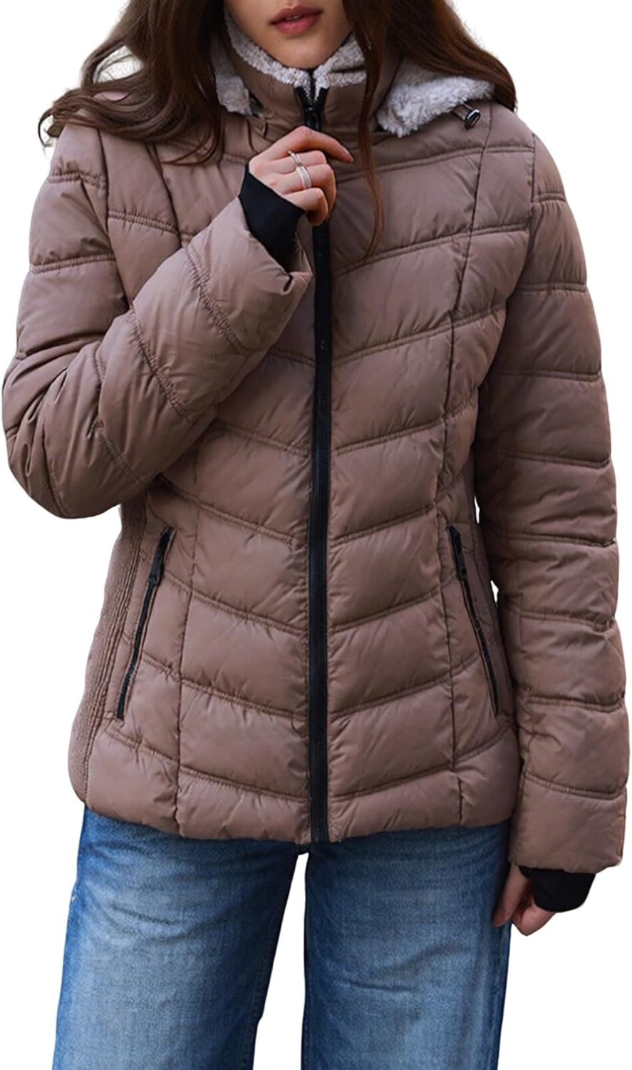 This jacket has a chic diamond - quilted pattern for style and even warmth. Its detachable hood is lined with soft faux fur for heat retention. Side zippered pockets, it's functional. Lightweight yet warm, it offers great thermal performance. The neutral color makes it easy to match with various outfits