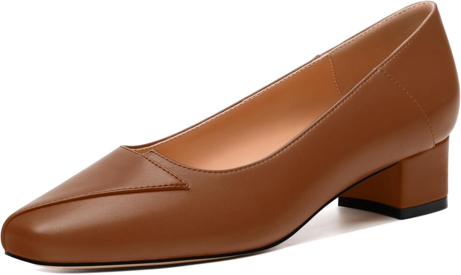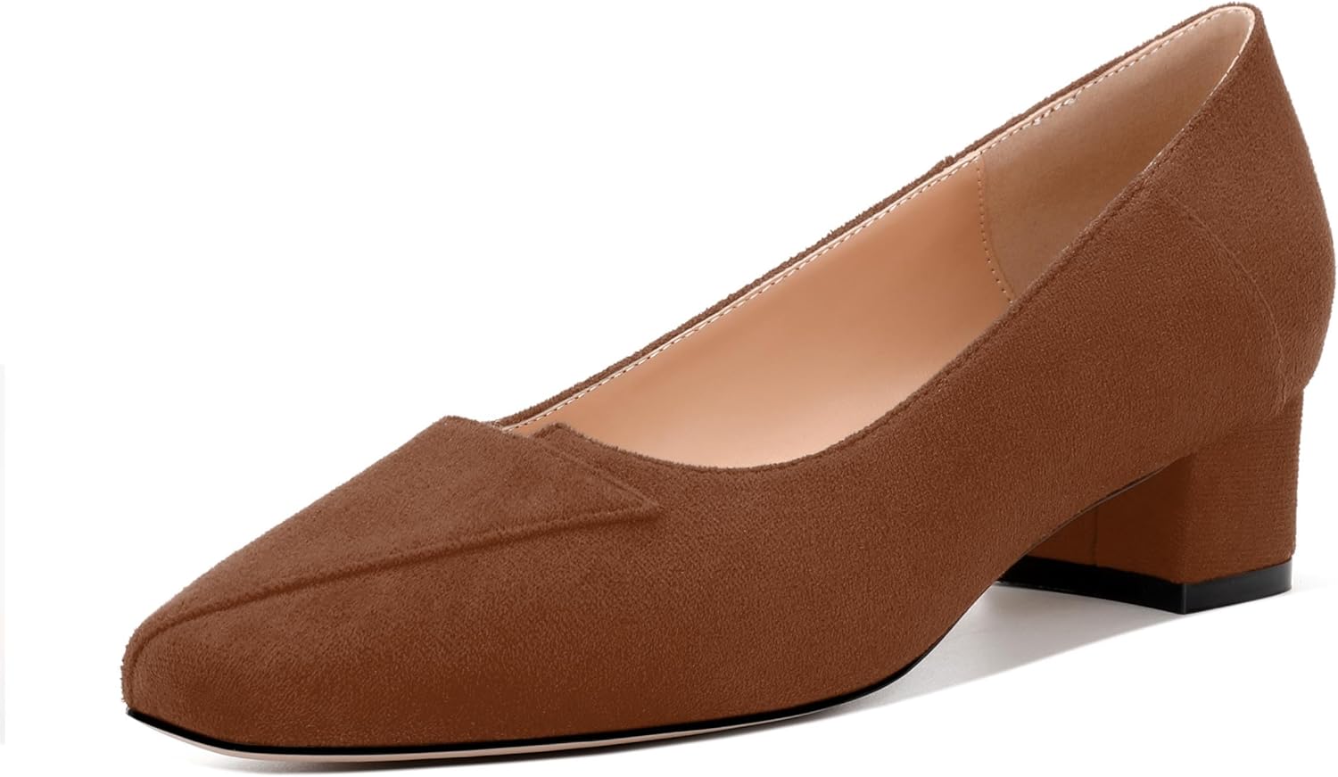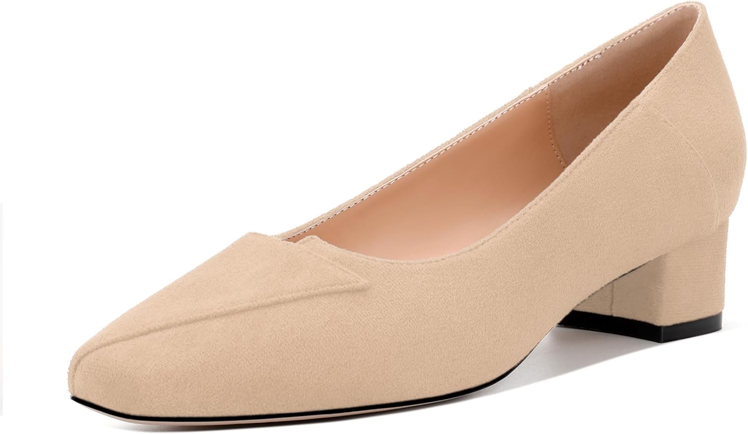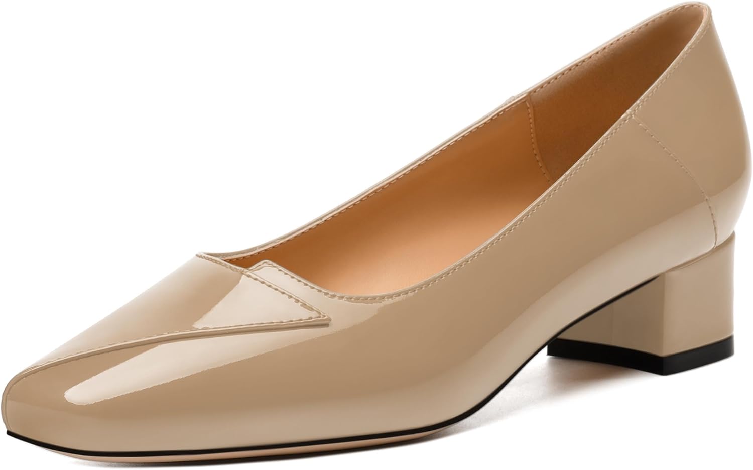 MISEZOXI Womens Pumps, Low Chunky Block Heels, Square Toe Womens Dress Shoes for Party and Office, Suede, Matte and Patent Dress Pumps