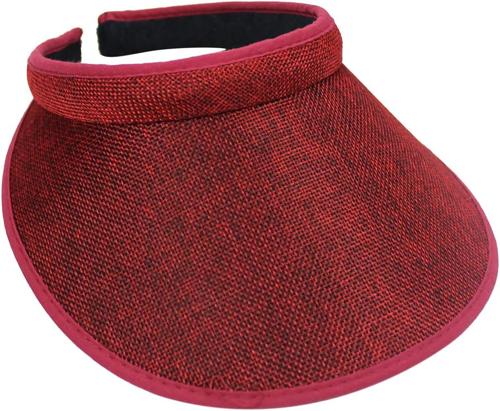 Womens Summer Sun UV Protection Brushed Cotton Paper Straw Wide Brim Clip on Beach Pool Sports Golf Cap Hat Visor