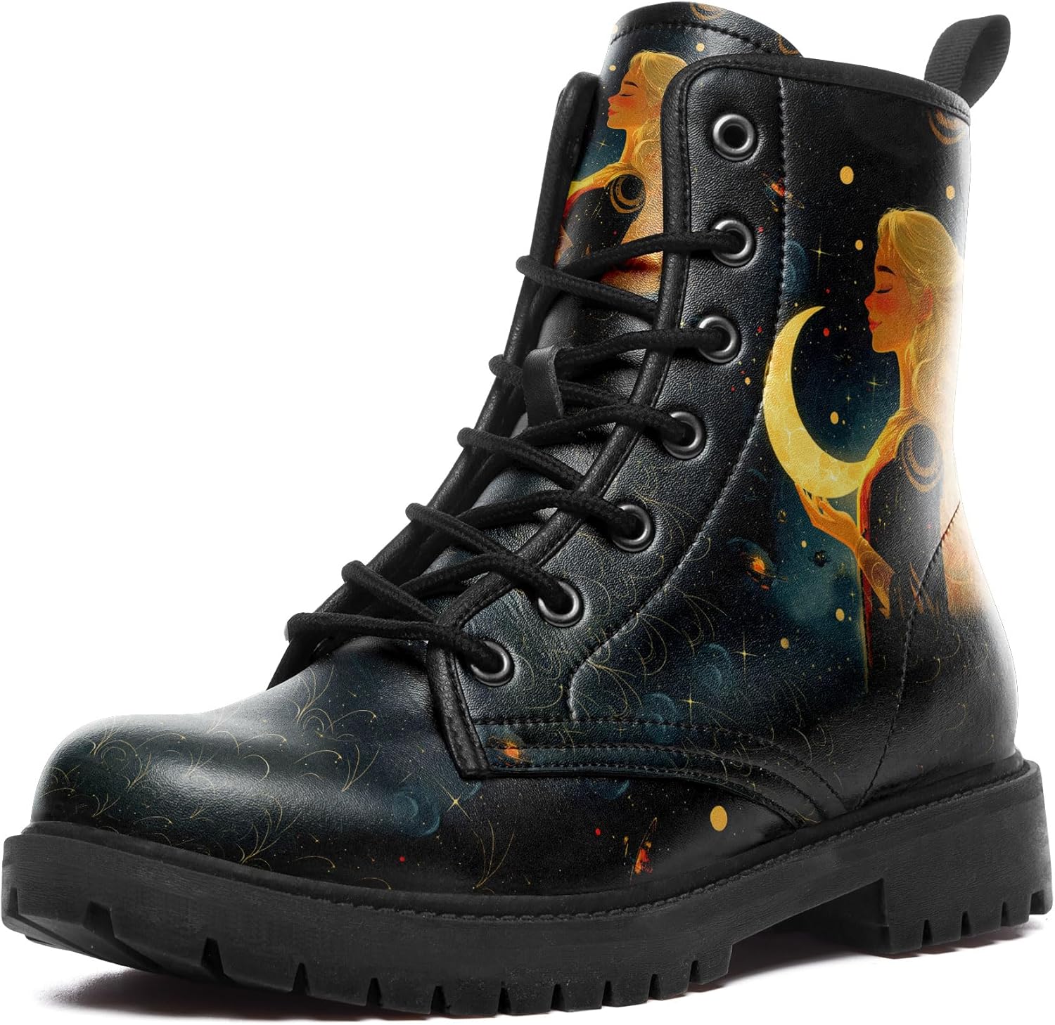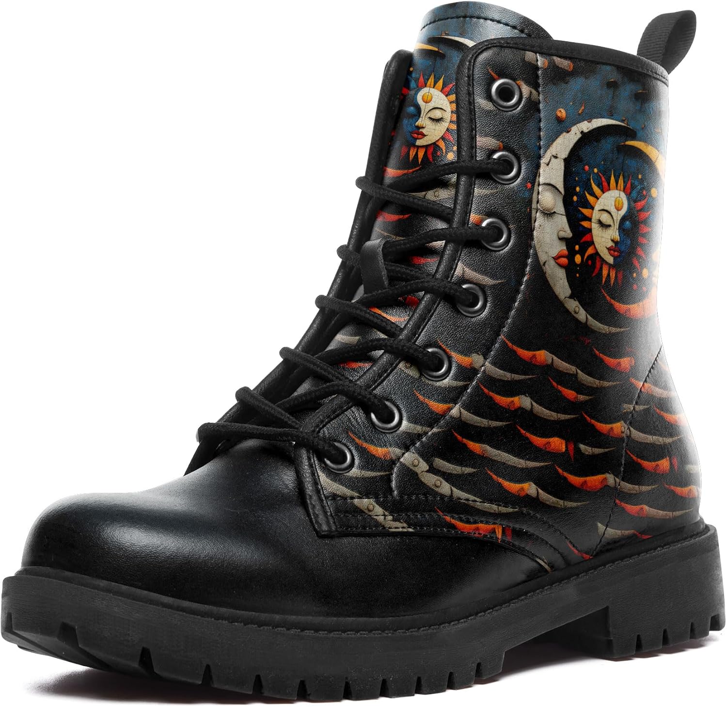 These women’s celestial combat boots are featuring stunning sun and moon artwork that blends gothic edge with mystical elegance. Designed for those who love to stand out, these ankle boots are the perfect statement piece for festivals, concerts, and everyday streetwear. With their lace-up closure and padded ankle support, these boots deliver both style and function. Pair them with jeans, skirts, or dresses to add a celestial touch to your outfit. Whether you’re drawn to gothic, witchy, boho, or festival fashion, these boots embody cosmic charm and versatility. Perfect as a gift for yourself or a loved one who loves alternative fashion, these boots are more than footwear—they’re a celebration of individuality and style inspired by the universe.