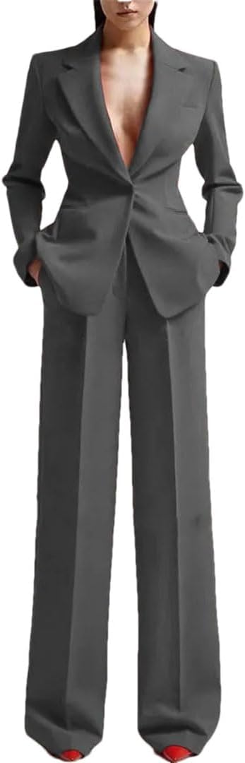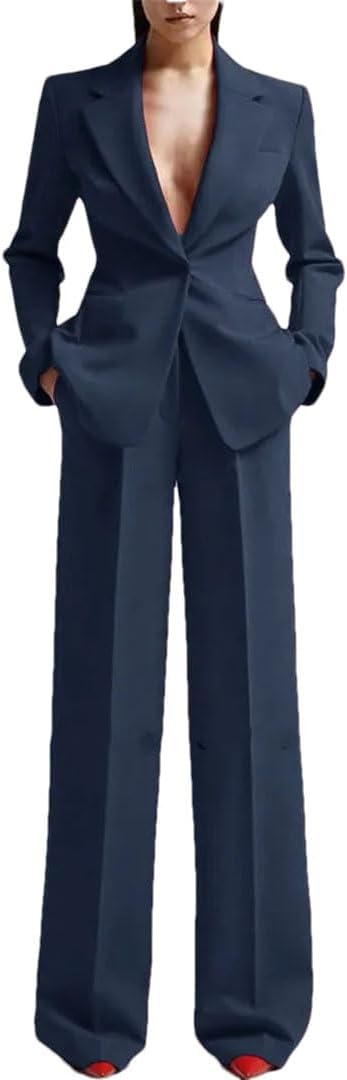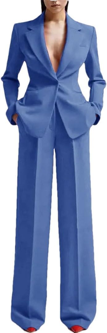 Material:POLYESTERWaist:High WaistSeason:Autumn/WinterPattern Type:SolidPant Style:Wide Leg PantsLength:Full LengthFront Style:FlatFit Type:SlimFabric Type:Laminated FabricDecoration:PocketsClothing Patterns:SLIMStyle:Office LadyCollar:Turn-Down CollarClosure Type:Single ButtonPant Closure Type:Button FlyClothing Length:RegularSleeve Length(Cm):FullGender:WOMENItem Type:Pant SuitsElasticity:Slight Strech
