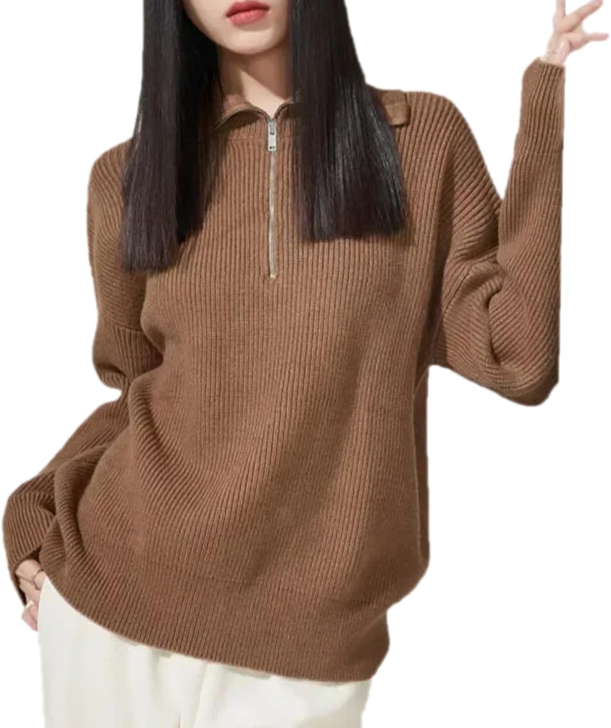 Pattern : Loose-fitting Season : Autumn/Winter Thickness : Thick Place Of Origin : China (mainland) Pattern Type : Solid Gender : WOMEN Sleeve Length(cm) : Full Style : Casual Decoration : Zippers Material : POLYESTER Sleeve Style : regular Collar : Turtleneck Clothing Length : regular Elasticity : High Strecth Fit Type : LOOSE Origin : Mainland China pattern : Solid color Wool thickness : Conventional wool Sleeve length : Long sleeved style : Sleeve Thickness : Thickened