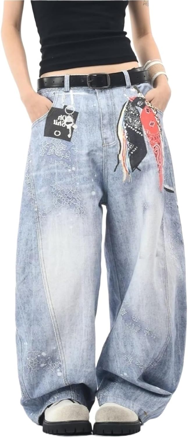 Title: Fashion Statement with 3D Art: Y2K Retro Wide-Leg JeansStep into these unconventional jeans and become the center of attention. Featuring hyper-realistic 3D bow tie prints that seem to leap off the fabric, these Y2K women's jeans set a new standard for retro street style. A perfectly replicated vintage wash complements the liberating wide-leg cut, crafted for fashion rebels who dare to stand out. Reimagining the effortless cool of 90s rock ‘n’ roll, it injects fresh energy into your modern wardrobe.Product Highlights:Bold 3D Relief PrintThe stunning high-resolution 3D bow tie pattern makes you the center of attention. More than just a print, it's wearable art that adds a unique avant-garde dimension to your look, ensuring you never blend into the crowd.Authentic Retro Rock ‘n’ Roll AestheticWe've perfectly recreated the weathered, vintage texture of time-honored denim. Each piece undergoes a custom vintage wash process, simulating the worn-in look of treasured, long-owned garments. Every detail meticulously recreates the raw rebellious spirit of 90s rock.Ultimate Comfort SilhouetteThe relaxed, wide-leg cut delivers unparalleled freedom. The roomy fit from hips to thighs flatters your figure while ensuring all-day comfort, effortlessly handling any activity.Premium Denim FabricSoft to the touch yet resilient at its core—crafted from breathable medium-weight cotton denim built to last. Durable, fade-resistant, and shape-retaining, your favorite piece will retain its vibrant look wash after wash.A versatile style canvasFrom music festivals to urban everyday wear, this piece becomes your fashion statement. Pair it with a simple band tee and combat boots for classic rock ‘n’ roll vibes, or layer it with a sleek crop top and heels for an unexpectedly sophisticated edge.women 3d tie print jeans y2k vintage wide leg baggy denim pants grunge streetwear distressed boyfriend fit loose fit high waist 90s retro alternative fashion gothic pastel grunge aesthetic casual trousers hip hop rave festival clothing pastel goth womens jeans
