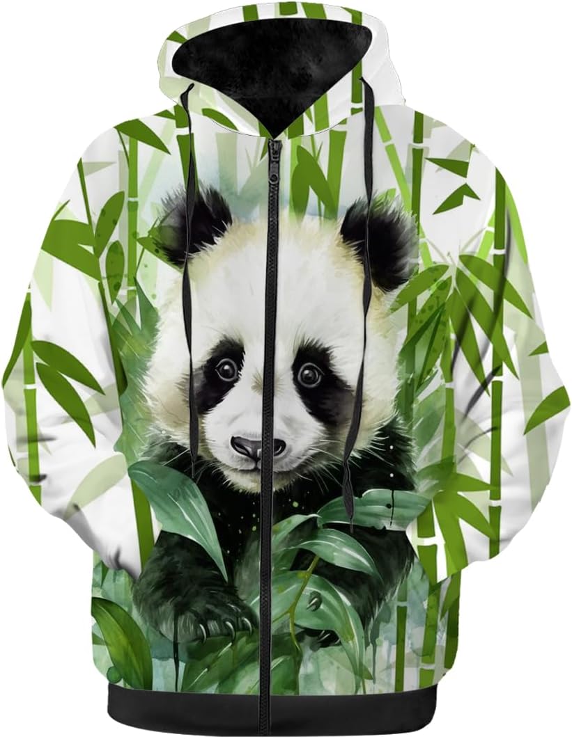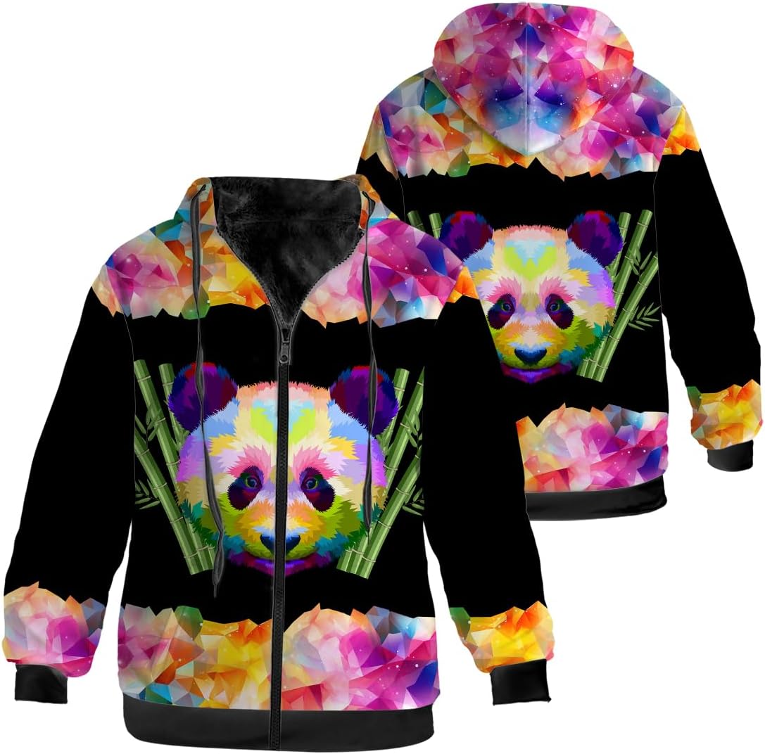 Womens winter fleece lined zip up jacket-suitable for cold weather.Womens hoodie jacket features a full zipper for effortless wear.Side pockets conveniently store phone,keys,or gloves.Adjustable hood drawstring provides wind protection and neck warmth.Winter coat with hood designed for daily casual,outdoor activities,home,work,workouts,travel,running,cycling,camping.Full zip fleece jacket features personalized 3D print graphics and make funny panda gifts for her,him,mom,dad,friends and couples.Womens winter jacket in plus sizes,from S to 5XL.Warm coat suitable for big and tall.Machine or hand washable