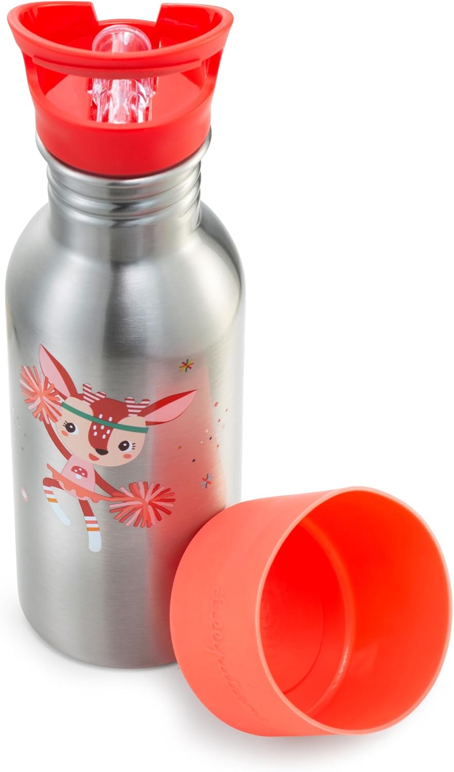 What are the features of the Wonder Stella bottle? The bottle is very practical with its straw and removable cup. Your child can drink independently. It matches with the picnic bag, lunch box, and backpack from the same collection. What are the specifics of the product? Capacity: 600 ml Material: Stainless steel, plastic cap, silicone bottom protection Size: 7 x 23.5 cm Model: Wonder Stella Recommended from 3 years