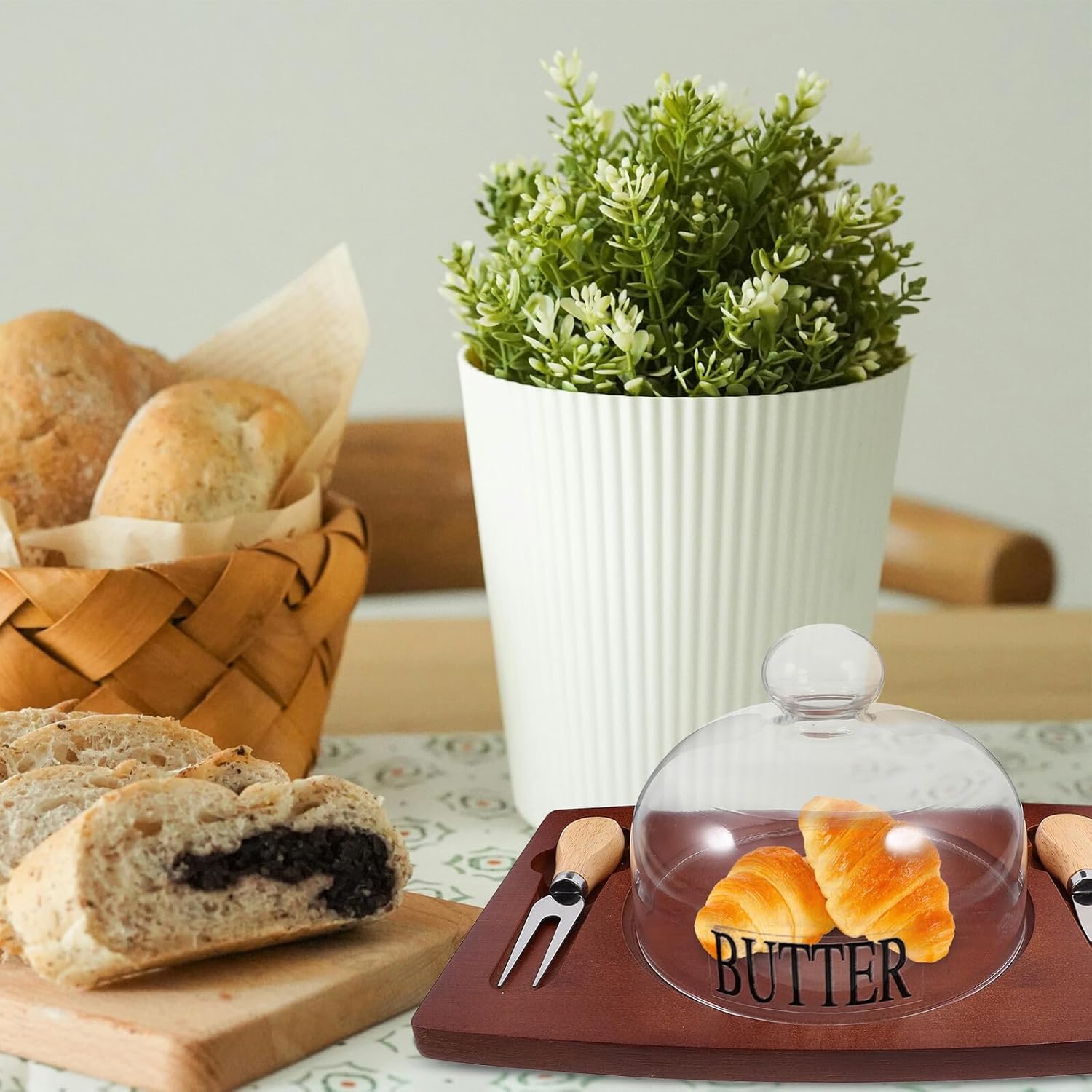 Package List 1 x wood tray*with dome) 1 x cutter 1 x fork Features -Material:Wood, glass -Color:Multi -Size:28.50X19.50X1.30cm/11.20X7.66X0.51in -Product Info:Butter box storage tank - In addition to butter and cheese, this versatile cutting box can also be used to cut other types of food butter keeper dish. - Made of wood, glass, this butter cutting box is designed to be and easy to clean butter tray with lid. - With its efficient design, this cheese cutting box makes the task of cutting butter and cheese incredibly easy butter dish for countertop. - This small and portable cheese cutting box is perfect for both home and travel use butter stick holder. - With its unique design, this cheese storage box keeps food fresh and prevents spoilage butter container with cover.Goods Descriptionbutter stick holder Smooth surface and corners, fine workmanship, thick and .butter dish with lid This multi-function Butter Tray is made of wood, glass materials, and can be used for a long time.butter dish for refrigerator The design of the lid is to keep the butter fresh and reduce the absorption of peculiar smell