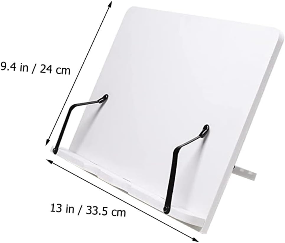 Package Include 1 x book stand Features -Color: White reading book stand -Size: 33.50X24.00X4.00cm/13.17X9.43X1.57in textbook holder -Material: Wood book holders for reading hands - Designed with a simple and elegant look, this book stand for reading can easily win your favors book stand for reading. - Wide uses, it can be applied for textbook, cookbooks, and other books for reading display stand. - It is sure to meet your different needs and bring you of conveniences plate stands for display. - This book holder is made of wood material, and to use, support long time use music stand. - A great your , on birthday, Christmas, new year and other special days book holder.Goods Descriptionplate stand Its workmanship its practicability and durability, giving you a pleasant using experience.book holder This book stand can be used for learning, reading, playing, cooking and working.book stands for display Suitable for students, musicians, chef and teachers to use, provide them a helpful tool to hold and display books.cookbook holder Multipurpose