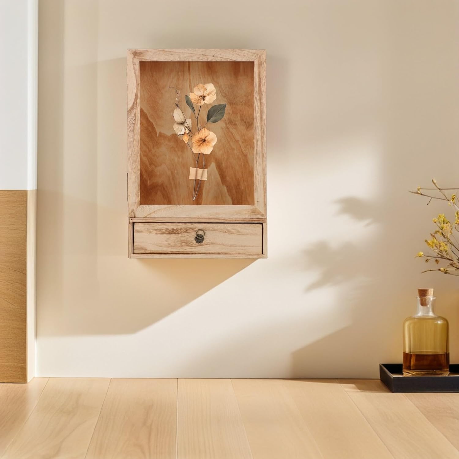 Package Include 1 x wood specimen box Characteristics -Clear protective display: the transparent glass cover functions as a display case for collectibles or a butterfly display case, preserving pressed flowers and against dust and damage DIY dried flower photo frame -Compact yet spacious: this wood dried flower frame saves space while providing a substantial showcase for your collectibles or dried flower display stand butterfly display case -Product Info: solid wood specimen box -Color:Light Brown -Material:Wood -Versatile hanging options: this shadow box with clear window is simple to hang, making it suitable as an display case box or decorative photo holder for varied spaces wood dried flower frames -Adds excellence: specimen frame, pairing the durability of frame box wood with a refined look, perfect for a sophisticated wooden shadow box frame dried flower holder -Size:42.20X28.00X10.00cm/16.58X11.00X3.93in -Ideal for nature exhibits: use as an specimen box, butterfly specimen frame, or exhibit picture frame, ideal for science classrooms, home galleries, or museums dried flower decorGoods Informationphoto holder Its upright, hollow structure saves space while beautifully exhibiting dried flower display frames or display frames, making it suitable for both living spaces and educational collections.exhibit picture frames Showcase your butterfly specimen in this wood dried flower frame, blending seamlessly as a shadowbox picture frame or photo frame for unique exhibitory style