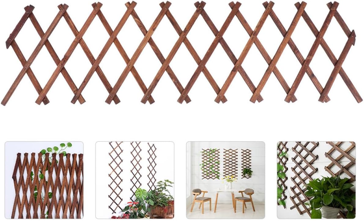 Package Include 1 Support Features - Color: Brown. - Material: Wood. - Size: 44.00X22.00X0.90cm/17.29X8.65X0.35 inch. - Carbonization treatment: Featuring carbonization high temperature treatment, this garden trellis is Wooden Garden Trellis. -Product Info:Carbonized wood flower stand - surface, uniform structure, corrosion resistance, not easy to deform Wooden Plant Climb Support. - This wood fence panel can be used for wall decoration, climbing plant support panel or garden fencing, there are more uses waiting for you to discover Willow Fence. - This garden trellis can expand freely, and it can be hung horizontally and vertically Climbing Plant Support. - Made of hard material, our expandable garden trellis features clear texture, good pressure resistance and stability.Goods InformationGarden Trellis Our wooden lattice wall planter is expandable, you can adjust it to the size which you want.Expandable Garden Trellis The wood lattice fence made of thicken and wood material, the wooden lattice material is not but also durable