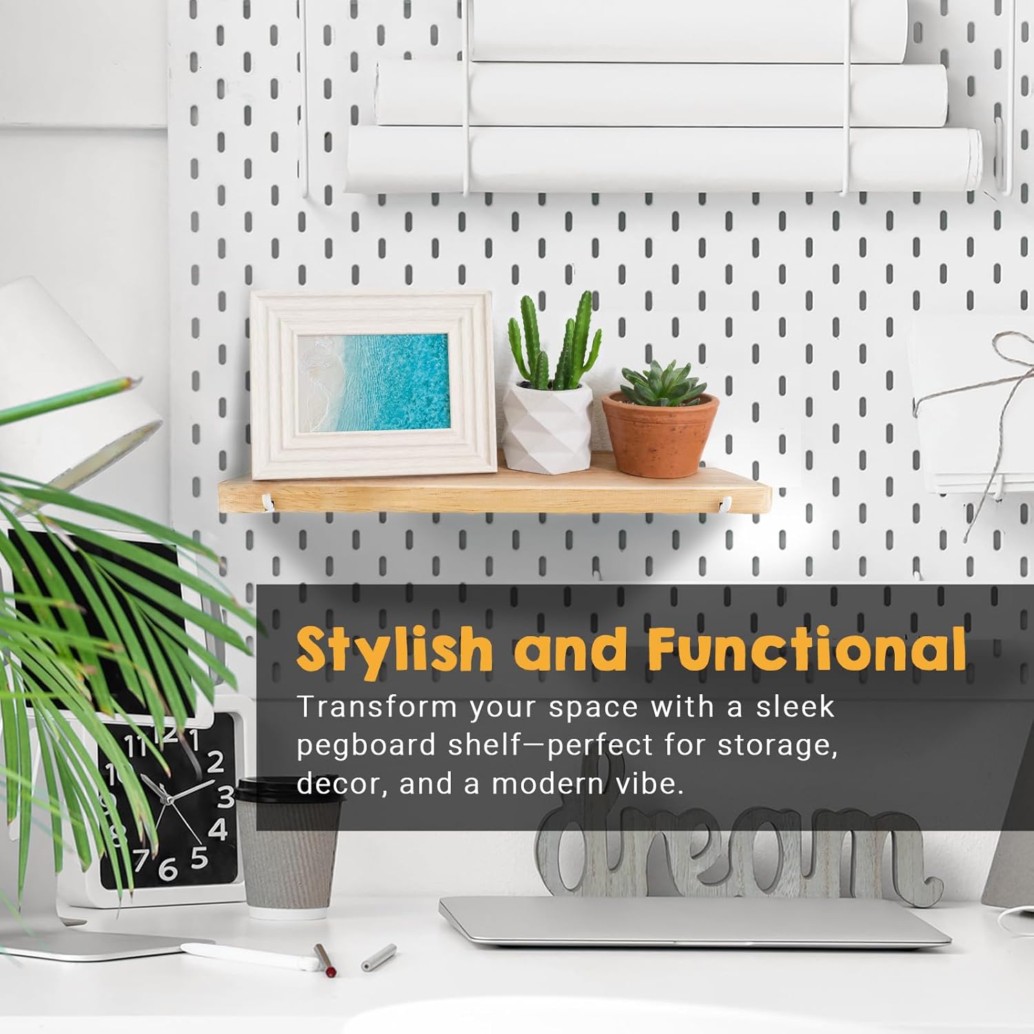 | Additional Features | Premium Rubberwood Pegboard Shelf (Natural Wood Finish), Compatible with IKEA Skadis Pegboard |