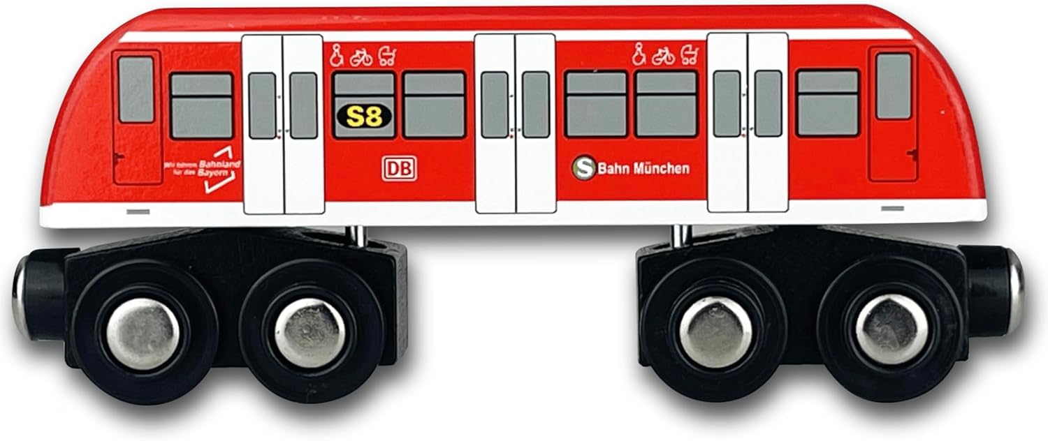 Experience the world of local transport with the detailed wooden S-Bahn from tiny trainz. The replica of the Munich S-Bahn line S8 impresses with its high-quality workmanship made of robust wood and child-friendly safety. The playful imitation of real rides promotes imagination, motor skills and logical thinking - ideal for little explorers.