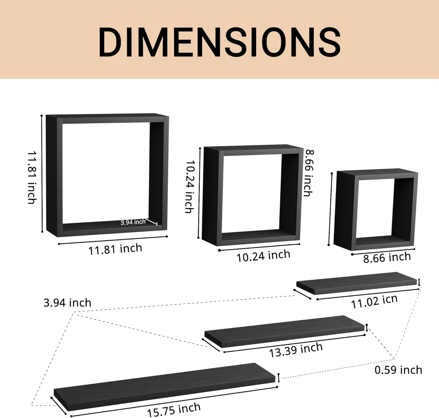 | Set Name | LUDORU Black Cube Floating Shelves Set of 6 |