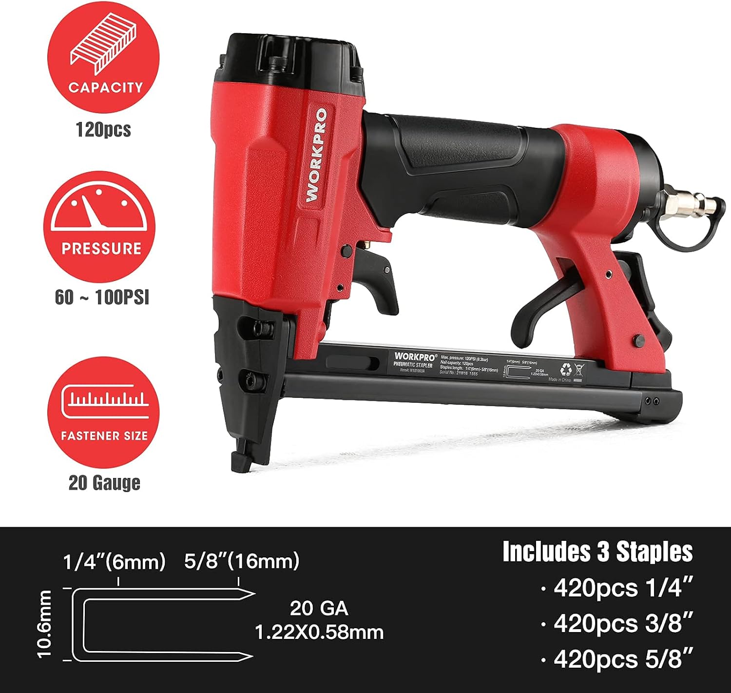 WORKPRO Pneumatic 20 Gauge Staple Gun+WORKPRO 8-Piece Clamp Set for Woodworking