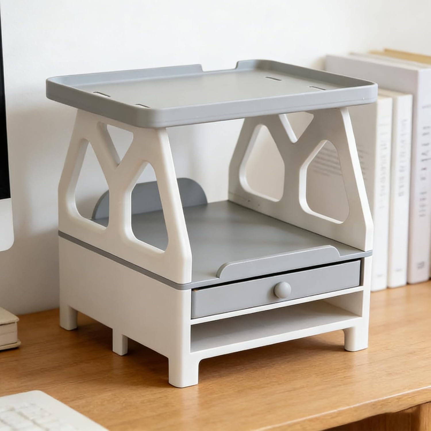 This desktop organizer, designed specifically for the Cricut Joy engraving machine, helps you organize your crafting space and unleash your boundless creativity. This stylish workbench provides your Cricut Joy with a dedicated and beautiful home, protecting your machine and preparing it for your next project. It features a built-in drawer for neatly storing rolls of vinyl, heat transfer ink, or other materials; plus a separate upright tool rack for easy access to essential accessories such as weeding tools, scissors, and pens. This organizer is ideal for craft enthusiasts, hobbyists, and all Cricut Joy users, transforming a cluttered desktop into a clean, efficient, and inspiring creative space. Say goodbye to searching for tools and focus on the creations you love.