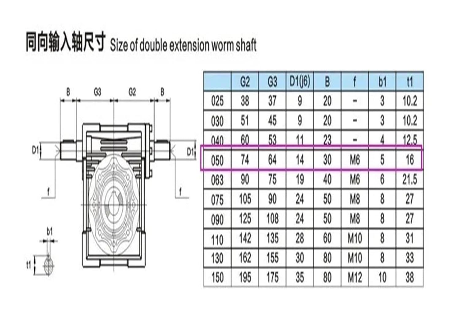 Worm Gearbox Speed Reducer NRV050-VS double input shaft 14mm Ratio 5:1 - 100 :1Worm Reducer*1pcNote:With gear ratio 5:1,7.5:1, 10:1, 15:1, 20:1, 25:1, 30:1,40:1, 50:1, 60 :1, 80:1, 100:1for customers. this link with ratio This is double shaft input reducer and hole output. if need shaft output, please contact us.We also have NMRV 25/30/40/63/75/90 Models, if need, contact us please.Color: silver and blue (sometimes just one color)Material for worm reducer:housing:aluminum alloy die castWorm gear: Nodular cast iron and bronzeFeature ofworm reducer gearbox:1) High quality aluminum alloy die cast gearbox2) High accuracy worm gear and worm shaft3) Less noise and lower temperature increase4) Easy mounting anc connection, high efficiencyDimensional drawing of worm reducer NRV050-VS:(unit:mm)We also have worm reducerparts such asoutput shft, torque arm and output flange,If you need to click on the following link to buy:NMRV50 Dual or Single output shaft:Torsion arm :NMRV50 Output flangeThe production line and stock view:Torque : 21N.m-89N.mModel Number : NRV050/RV50Output Power : 0.12KW - 0.75WInput Speed about : 1500rpmOutput Speed : Varies with changes in speed ratioOutput hole diameter : 25mm