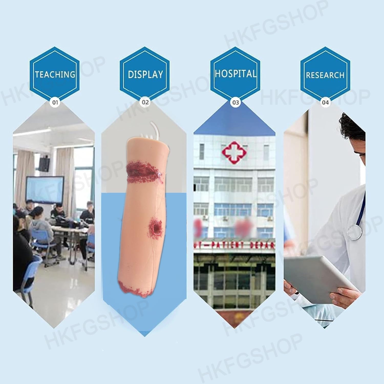 ★ Our model can help medical students with skills in the profession. Can also be used for comprehensive first aid training and to help you learn the correct techniques for treating different types of wounds. Realism - can simulate realistic wounds and realistic bleeding scenes. Reusable - Wound trainer provides long-term training opportunities. Various training methods: Bleeding simulation Wound Suturing Exercise Haemostasis Exercise Wound Dressing Exercise Product material: silicone Size: 28 x 10 x 10cm Product color: Skin color Packing list: Wound Care Trainer model *1 ★ Due to the manual manufacturing process, there may be variations in the appearance and colour intensity of the simulated blood on the wounds compared to the images shown. Please note the possible differences.