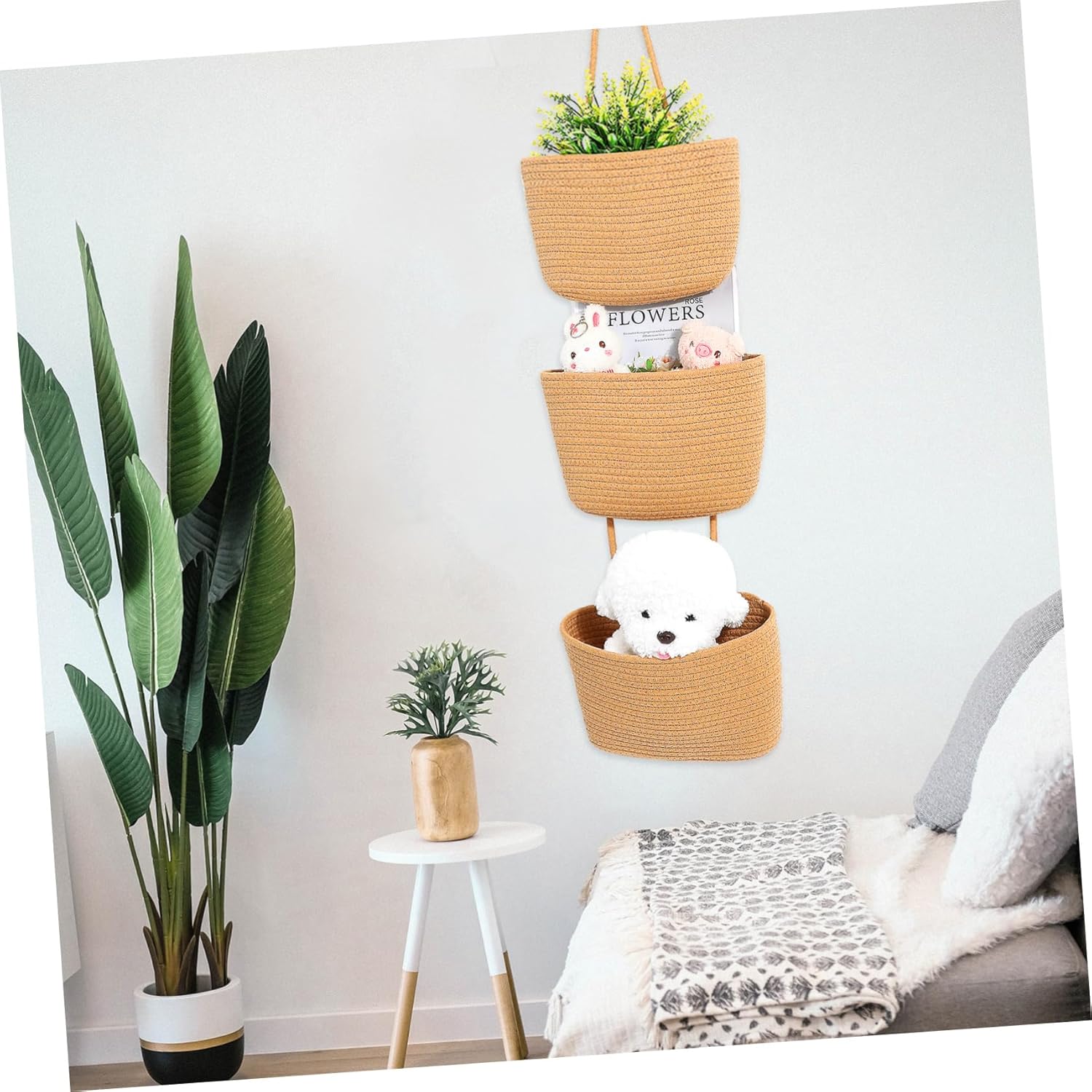 Package Include 1 x Hanging Basket Characteristics -Color:Brown wall storage organizer -Material:Cotton front door basket - Versatile Application: Suitable for use in kitchens, bathrooms, bedrooms, and more, these wall baskets offer convenient storage woven hanging basket. - Space-Saving: These hanging baskets can be mounted on doors or walls, saving floor space and maximizing the use of available space three-tier hanging basket. - Sturdy Material: Crafted from finely woven cotton rope, these 3 tier hanging baskets are sturdy and resistant to loosening or breaking hand-woven hanging baskets. - Size: 28.00X27.00X6.00cm/11.00X10.61X2.36in wall hanging storage basket - Multi-Layer Design: The hanging wall basket features a multi-layer design, providing ample space for organizing items efficiently hanging baskets for organizing. - Minimalist Style: With a simple shape and woven texture, these hanging door baskets complement various home decor styles wall mounted basket.Goods Informationwall hanging storage basket Our hanging basket can be easily mounted on walls or doors, saving you valuable floor space.hanging storage basket Introducing our Wall Hanging Basket, the great storage solution for your home! With its multi-layer design, this wall basket provides ample storage space for your belongings