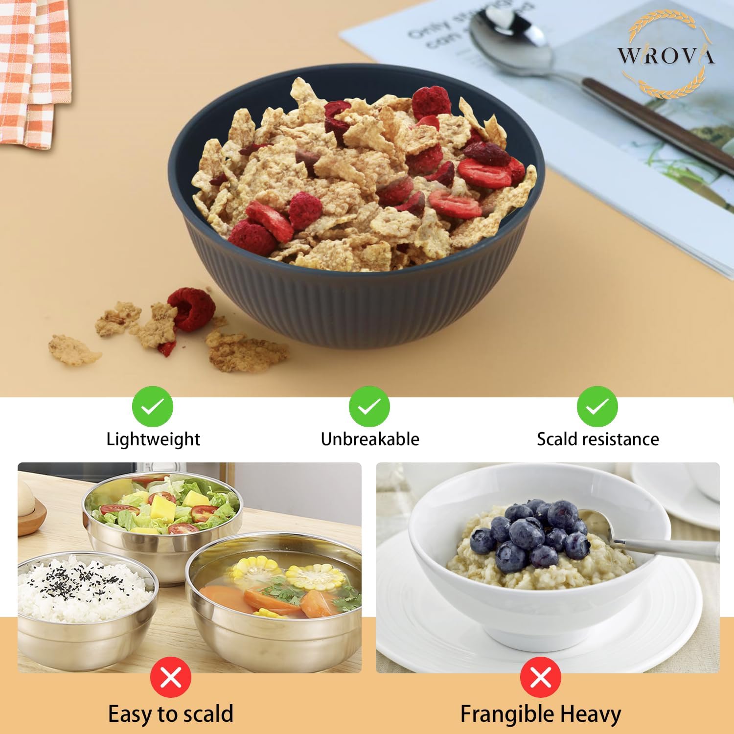 Wrova 10inch wheat straw plates set of 8 - 26oz wheat straw cereal bowls set of 8 - 16oz wheat straw cups set of 8 - Classic series