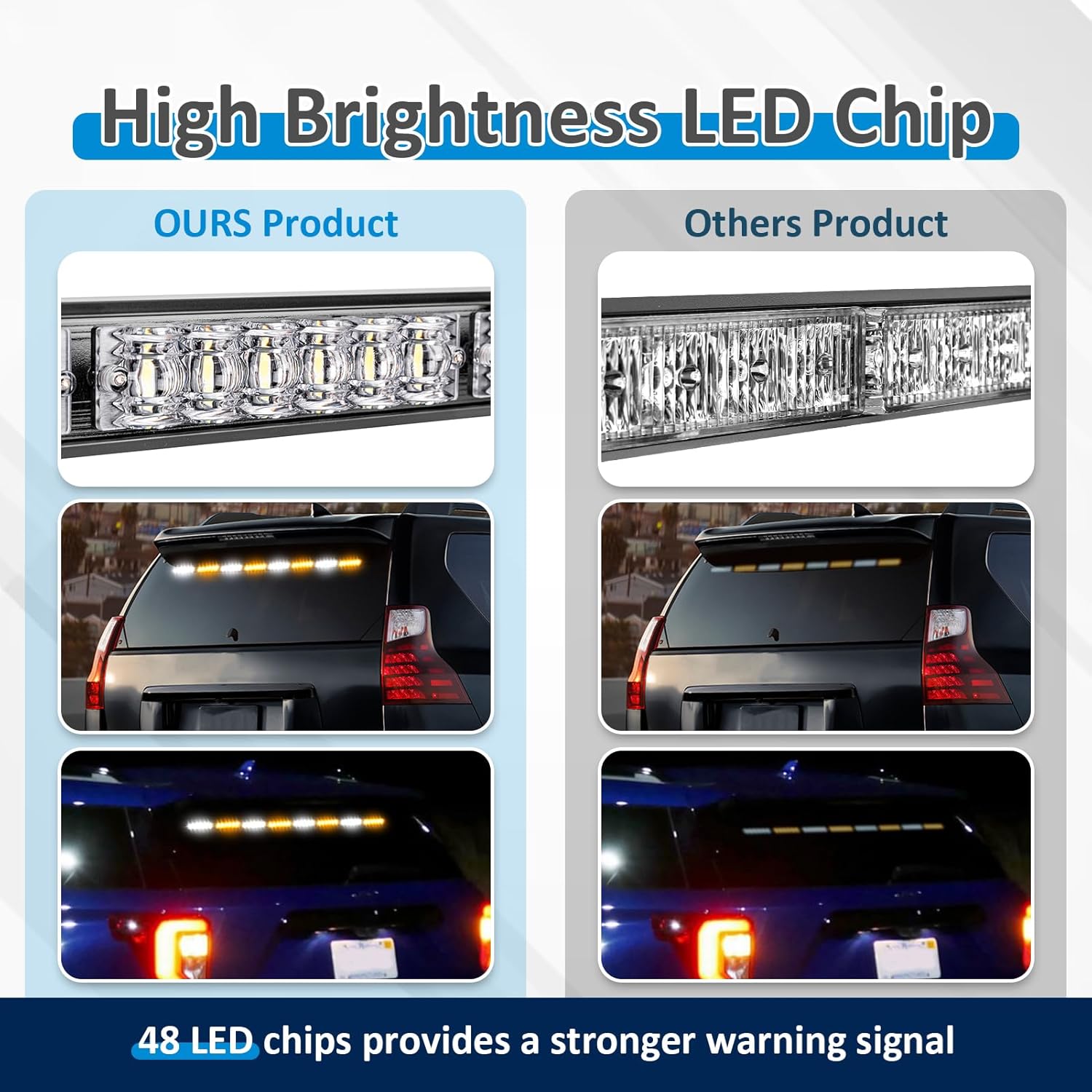 Fitment: This 35" strobe light bar is great for emergency vehicles, mail postal service, law enforcement,hazard warning, safety car, snowplow, tow trucks, trailer and tractor etc. Mount on cars interior front / rear windshield, sunvisor, deck and dash etc.. or exterior roof top. Specifications Item: Front/Rear Window LED Strobe Lights LED Power: 48W Working Voltage:12V Working Life: Over 50,000 hrs Working Temperature: -30 to 65℃ Waterproof Rate:IP67 Product Dimension: 35INCH Installation:suction cup mounts Placement: Securely attach to the windscreen Condition: Brand New