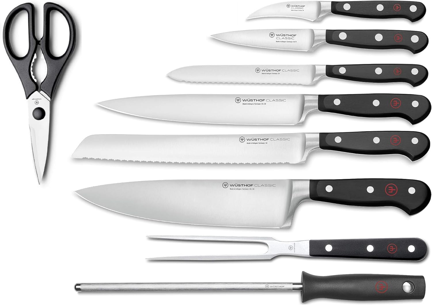 | Item Type Name | Wüsthof Messerblock 9-teilig, Classic (1090170904), Holz-Block (braune Esche) mit 6 Kochmessern, Fleischgabel, Wetzstahl, Schere, top Kochmesser-Set |