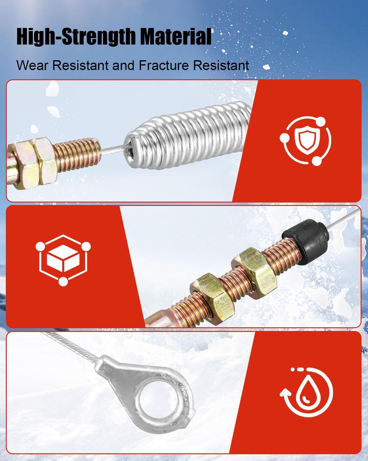 Stable Speed: Snow blower spiral cable can accurately transmit the rotation and linear motion of the motor to the propeller, ensuring that the propeller maintains stable speed and torque output under different loads. It can maintain good power transmission and ensure the continuous and efficient operation of the propellerResponsive: Cable design is precise and responsive, and can quickly respond when you adjust the operation, ensuring that the propeller can start or stop quickly according to your needs. This sensitive response makes the operation more natural and smooth, improving work efficiencyDurable and Long-Lasting: Made of high-strength materials, this cable exhibits excellent wear resistance, fracture resistance, oil resistance, and corrosion resistance, ensuring continuous and stable operation even in extremely cold, humid, or high salt environments. Not easily aged or damaged. This durability not only extends the service life of the cableEasy to Install: The design of the spiral cable for this snow blower makes it very easy to install and replace, without the need for complex tools or professional technical support. The cable size is precise and the interface design is reasonable