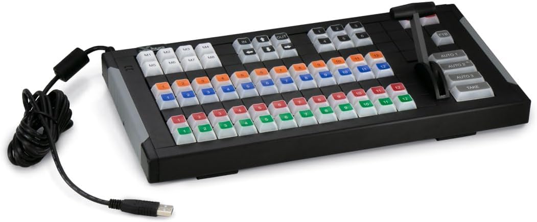 This X-keys USB Video Switcher T-bar controller comes pre-assembled to match the template in vMix that makes it an easy, ready-to-go solution right out of the box. Use the default layout or personalize the controller by adding keys and modifying button functions directly in vMix. **This controller is also fully supported by Central Control and there is a free SDK for developers.
