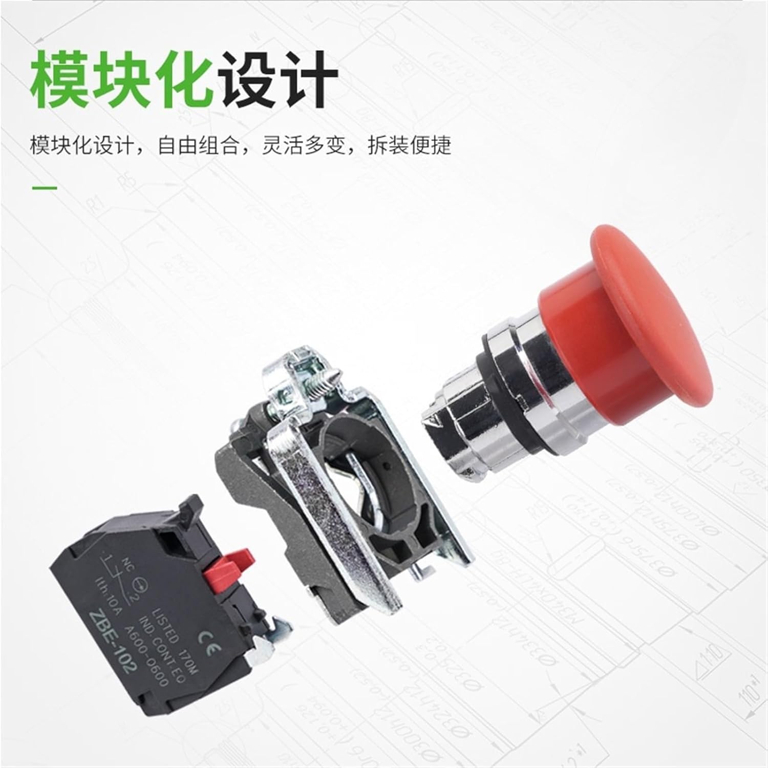 Knife SwitchesXB4-BC42 BC31 Neutral Metal Mushroom Head Button Switch 1Pcs