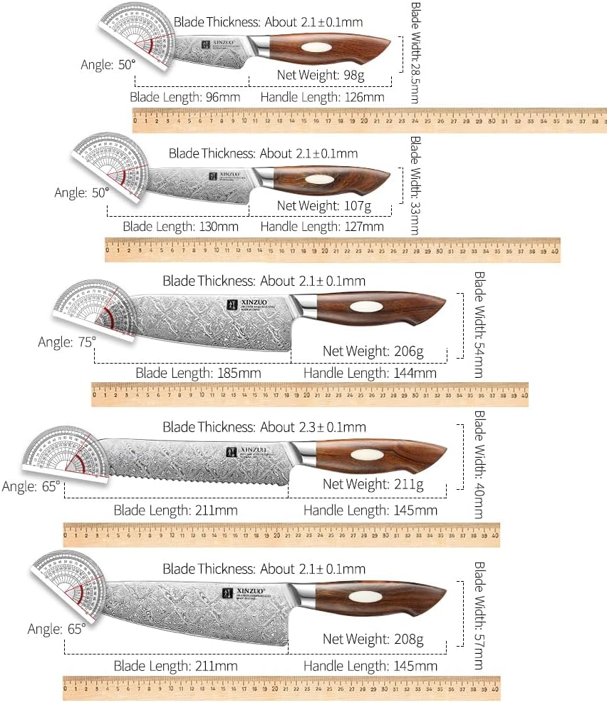 | Included Components | Chef Knife, Santoku Knife, Bread Knife, Kitchen Utility Knife, Paring Knife |