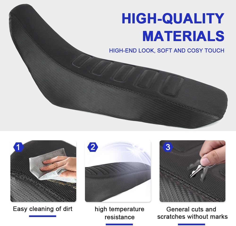 FITMENT: The seat cover compatible with DR650 1996-2023 Adjustable Kickstand Function: (Adjustable 0-3 inch) The item can go from stock length to approximately 2inch / 5.08cm shorter. It can also be extended approximately 1inch / 2.54cm longer than the OEM kickstand. Fitment: Fit for DR650 1996-2023 Note: using your factory hardware and springs Seat Cover PVC leather feature: - leather can withstand a certain amount of friction without being easily damaged - leather is very easy to clean. A damp cloth is usually all that is needed to remove surface stains - Its relatively smooth surface means it is not susceptible to bacteria and mould Design feature: - The shape of the seat cover fits the lines of the motorbike body, which can further highlight the smoothness and dynamics of the body. - Specially designed protrusions for improved friction and riding comfort - Installation Tools: The installation of the seat cover requires tools to secure it in place properly. Common tools needed may include a screwdriver, pliers, or a stapler NOTE: Please note that the installation is not done directly on the cushion; it requires a visit to a workshop for binding. Seat covers only, no sponge cushions, the size is the same as the original