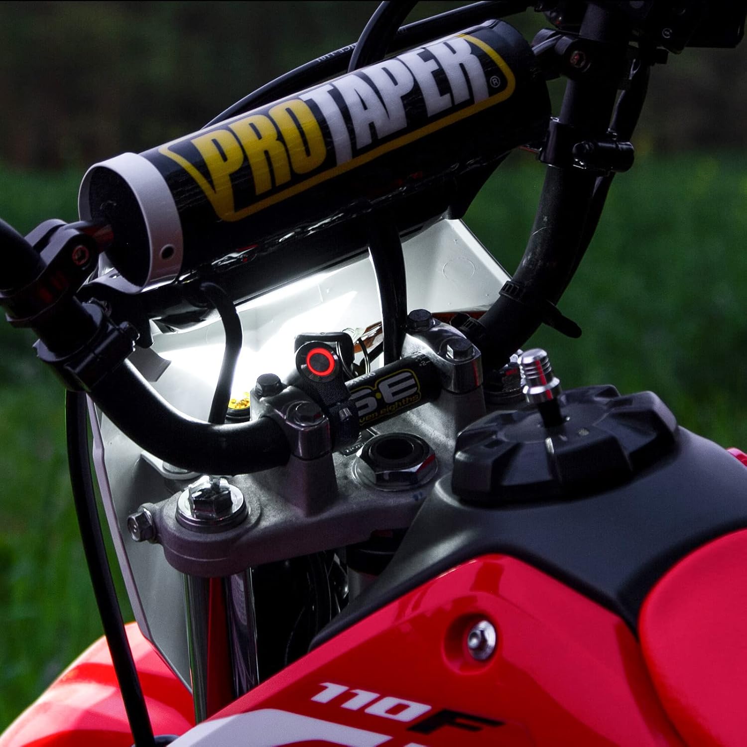 XKGLOW Off-Road Motorcycle Headlight Kit. Whether you have a pit bike, dirt bike, mini bike, or even a moped, (as long as it has a battery) this light will make your riding days endless! This kit comes with a DOT compliant 6" driving beam light bar and uses mounts that clamp the light bar and switch to any 7/8" handlebar. It also comes with the wire harness with a built in fuse, allowing for direct hookup to the battery. This allows for a simple, bolt-on installation on a variety of bikes.