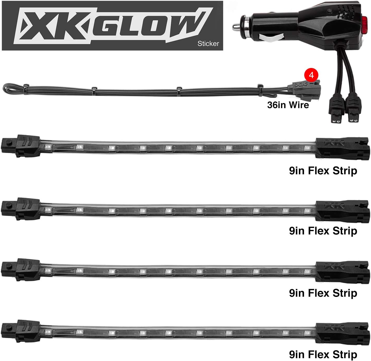 This XK Glow Single Color LED Interior Neon Accent Light Kit is optimized for use inside your vehicle. The lights are compact, ultra-bright, waterproof, and plug-n-play. The strips cast bright light from all angles without exposing the light source.