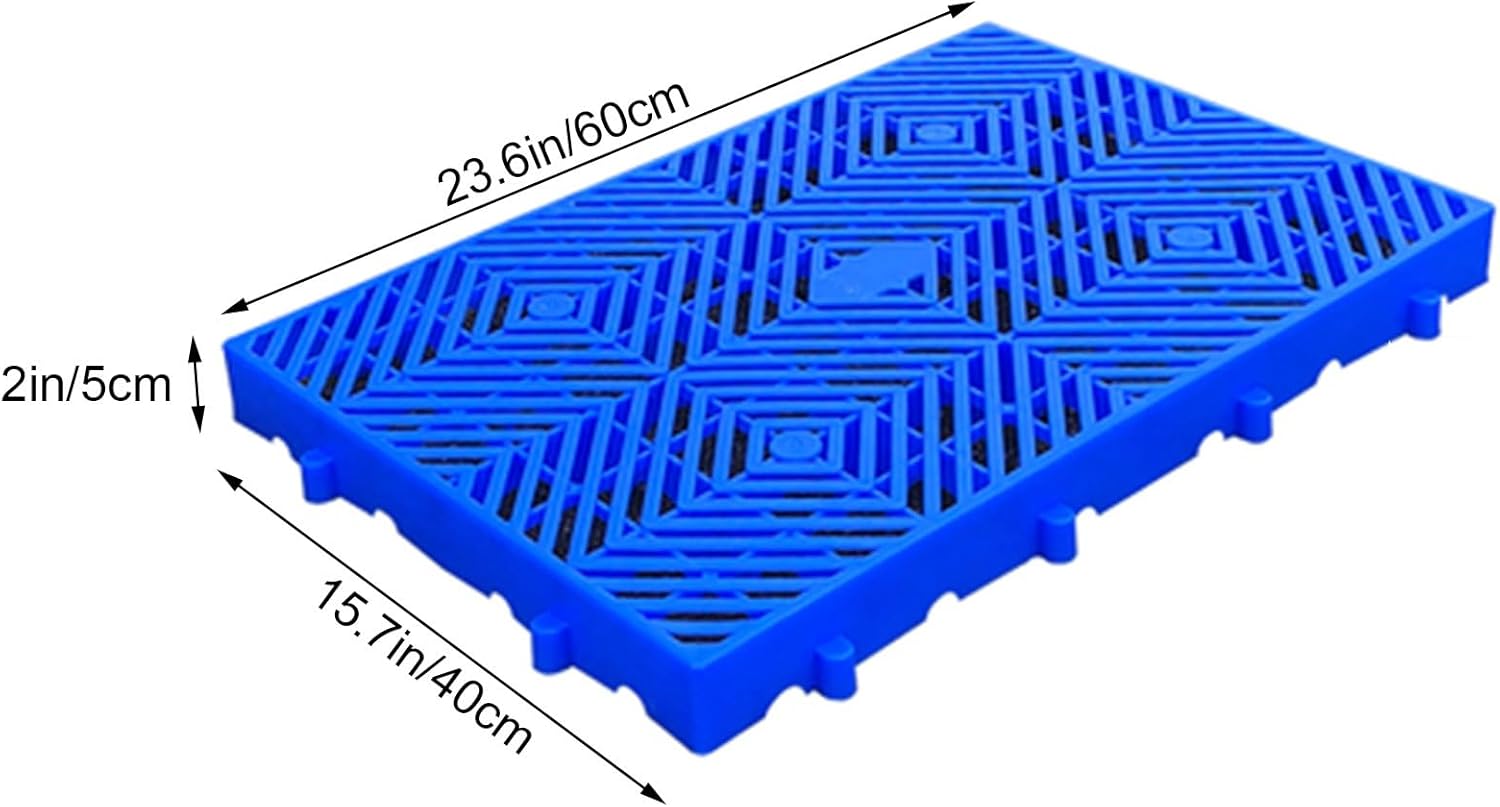 Brand : XPLKQXEFeature:The plastic pallet is made of HDPE raw material, and the surface is evenly covered with anti-skid particles, which has good anti-skid properties.The warehouse storage pads are brightly colored and have reinforced ribs on the back, which not only improves the stability of the plastic boards but also increases the load-bearing capacity of the pads.The grid platform pad is equipped with multiple drainage holes to effectively clear the accumulated water inside. Comes with splicing buckles, easy and convenient splicing, and can be used in a wide range of installations.Name: Breathable Grid Ventilation Pallet/Lightweight Floor Pallets/Polyethylene Pallet / Isolation Platform Pad Board/HDPE Breathable Grids Article Racks/Plastic Medium Size DisplayMaterial: HDPE raw materialColor: BlueDimensions (L x W x T): 23.6x15.7x2in/60x40x5cm , 39.4x19.7x2in/100x50x5cm , 39.4x23.6x2in/100x60x5cmCleaning: Rinse directly with waterFunction: Isolate moisture, warehouse displayUsage Scenarios: Warehousing, supermarkets, turnover, kitchen, garages, outdoor closets, storage rooms, etc.Packing List:1/2/4/6/8/10pcs x Plastic palletAttention:If you have any questions after receiving the package, we will solve it for you in time