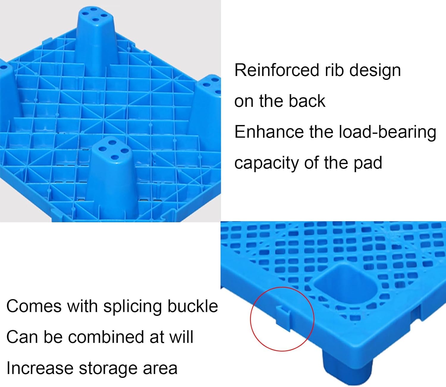 Brand : XPLKQXEFeature:The plastic pallet is made of HDPE raw material, and the surface is evenly covered with anti-skid particles, which has good anti-skid properties.The warehouse storage pads are brightly colored and have reinforced ribs on the back, which not only improves the stability of the plastic boards but also increases the load-bearing capacity of the pads.The grid platform pad is equipped with multiple drainage holes to effectively clear the accumulated water inside. Comes with splicing buckles, easy and convenient splicing, and can be used in a wide range of installations.Name: Breathable Grid Ventilation Pallet/Lightweight Floor Pallets/Polyethylene Pallet / Isolation Platform Pad Board/HDPE Breathable Grids Article Racks/Plastic Medium Size DisplayMaterial: HDPE raw materialColor: BlueDimensions (L x W x T): 15.7x15.7x4.7in/40x40x12cm , 19.7x13.8x4.7in/50x35x12cm , 19.7x15.7x4.7in/50x40x12cm , 19.7x19.7x4.7in/50x50x12cm , 23.6x15.7x4.2in/60x40x12cm , 23.6x19.7x4.7in/60x50x12cm , 23.6x23.6x4.7in/60x60x12cm , 27.5x23.6x4.7in/70x60x12cm , 27.5x27.5x4.7in/70x70x12cmCleaning: Rinse directly with waterFunction: Warehouse storage, supermarket displayUsage Scenarios: Warehousing, supermarkets, turnover, kitchen, garages, outdoor closets, storage rooms.Packing List:1/2/4/6/8/10pcs x Plastic palletAttention:If you have any questions after receiving the package, we will solve it for you in time