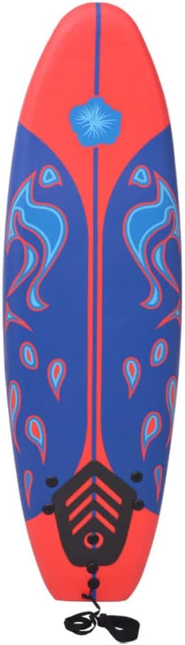 Taking this surfboard out in the waves will be very enjoyable!The main body of the surfboard is made of soft XPE, which allows for great shock absorption and has a high density that provides good buoyancy for beginners. The lightweight EPS foam core adds to the rigidity and strength of the whole surfboard. The slick bottom ensures you glide on the water smoothly. A set of three thruster fins made of sturdy plastic give the rider plenty of control on the wave; a high-quality ankle leash is included to connect you to the board so you do not lose it after a wipe out.With this complete set, you are ready to ride the waves!●Color: Blue and red●Material: XPE deck + PP bottom + EPS foam core●Dimensions: 66.9" x 18.4" x 3.1" (L x W x T)●Maximum load capacity: Approximately 198.4 lb●XPE deck thickness: 0.1"●With traction pad●Great beginner board for adults and children●Including 1 leash and 3 removable, plastic fins