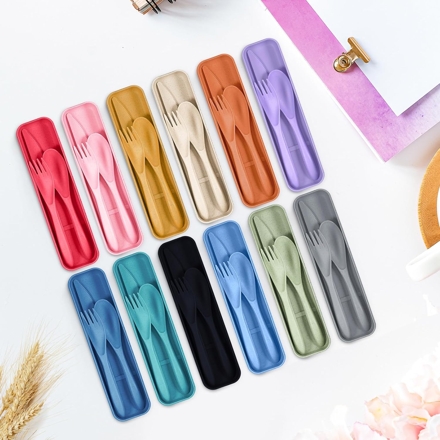Features: Thoughtful gift: You can share the lunch box utensils set with your family, friends, colleagues, neighbors and others as a thoughtful gift for housewarming parties, naturally expressing your care while strengthening your relationships. Reusable and washable: When not in use, the utensils for lunch box can be rinsed with clear water and wiped with a dry cloth to maintain good condition for the next use. Besides, you can put them into a dishwasher for cleaning to save time and energy. Specifications: Material: wheat straw Color: multicolor Length of spoon: approx. 6.3 inches Length of fork: approx. 6.1 inches Length of knife: approx. 7.3 inches Size of case: approx. 8.4 x 2.3 inches Package includes: 96 x Spoons 96 x Forks 96 x Knives 96 x Cutlery cases Notes: Manual measurement, please allow slight errors on size. The color may exist a slight difference due to different screen displays. The pointed parts may include, please use it carefully.