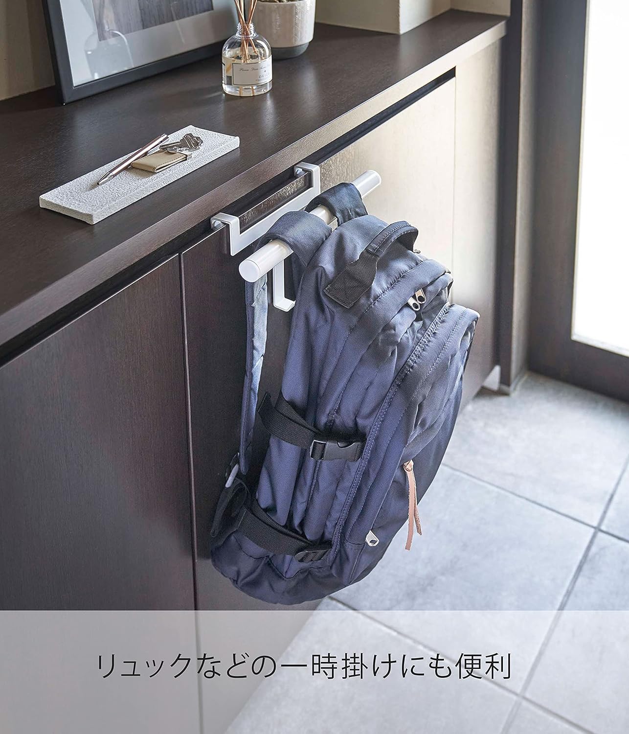 Easy to install on front door clog box storage door. Convenient backpack and backpack hanger! Versatile for your application. Easy to install by simply plugging it into the shoe storage door. Sturdy steel hanger to hold backpacks and backpacks securely. The hanger is also convenient for temporary hanging of rain gear, umbrellas, etc.