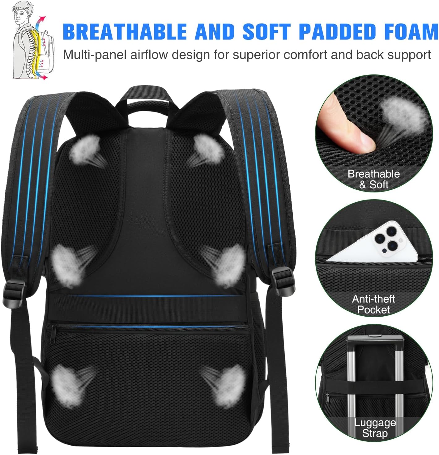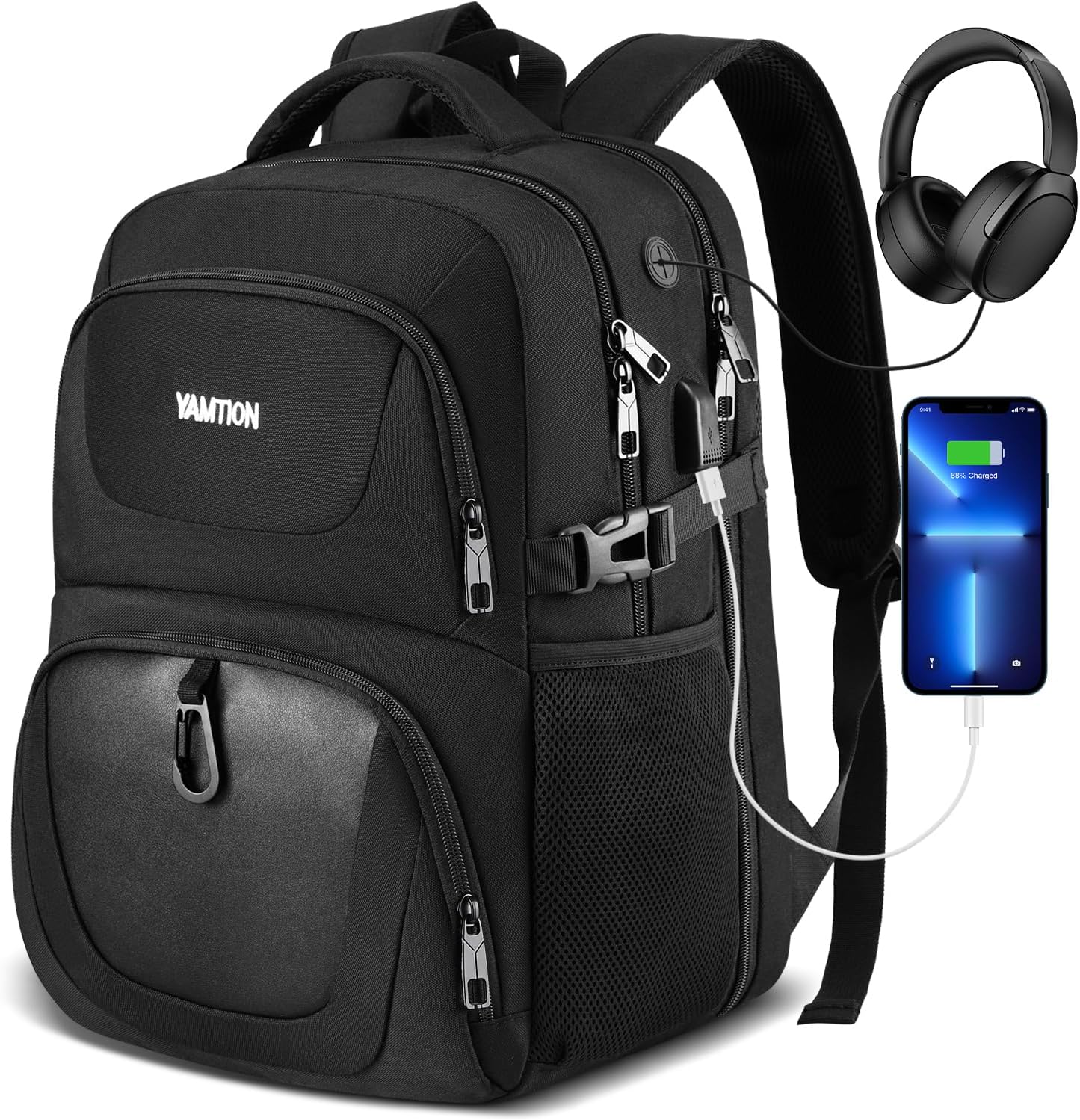 Dimensions: 19" x 13" x 8" Capacity: 35L Laptop Compartment: 13", 13.3", 14", 15.6", 16",17" Tablet Compartment: 9.7", 10.2", 10.9", 11", 12.9" Features: TSA Freindly Large Capacity Luggage Strap Metal hook on the front The logo is embroidered Made from waterproof polyester USB and Headphone Port What's in the Box: Backpack x 1 USB Port x 1