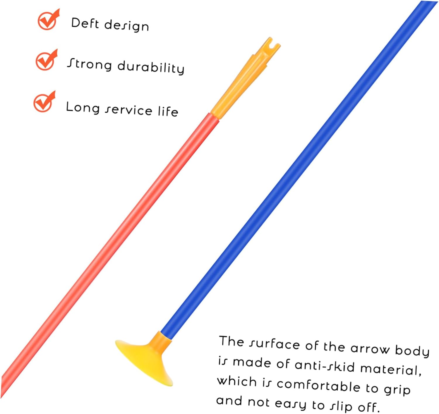 Package Include 12 x Replacement Suction Cup Arrows Features - Precision Function: The arrow is exquisitely designed with suction cup, with high accuracy, suitable for various scenarios suction cup arrows replacement -Material:ABS replacement suction cup arrows - High-strength Material: The arrow replacement is made of ABS material, will not easy to deform or break, for long time to use suction cup arrows -Color:Assorted Color suction cup - Anti-slip Surface: The surface of the arrow body is smooth, comfortable to grip and not easy to skid, very convenient suction cup arrows for replacement -Size:51.00X4.20X4.20cm/20.04X1.65X1.65in arrow - Wide Compatibility: Suitable for various bows, these arrows are convenient to carry, a must-have equipment for outdoor sports enthusiasts reusable arrows - Reasonable structure: Suction cup arrows make games more safer and easier to attach to the smooth glass, tiles, walls, floors replacement arrowsGoods Descriptionsuction cup arrows for replacement The suction arrows are manufactured with ABS materials, and for long time to use.reusable arrows Reasonable structure design, can stick to smooth walls very easily, safer for you to practice.suction Suitable for party games, suction cup games, funny and interesting, proper for indoor or outdoor, bringing you convenience
