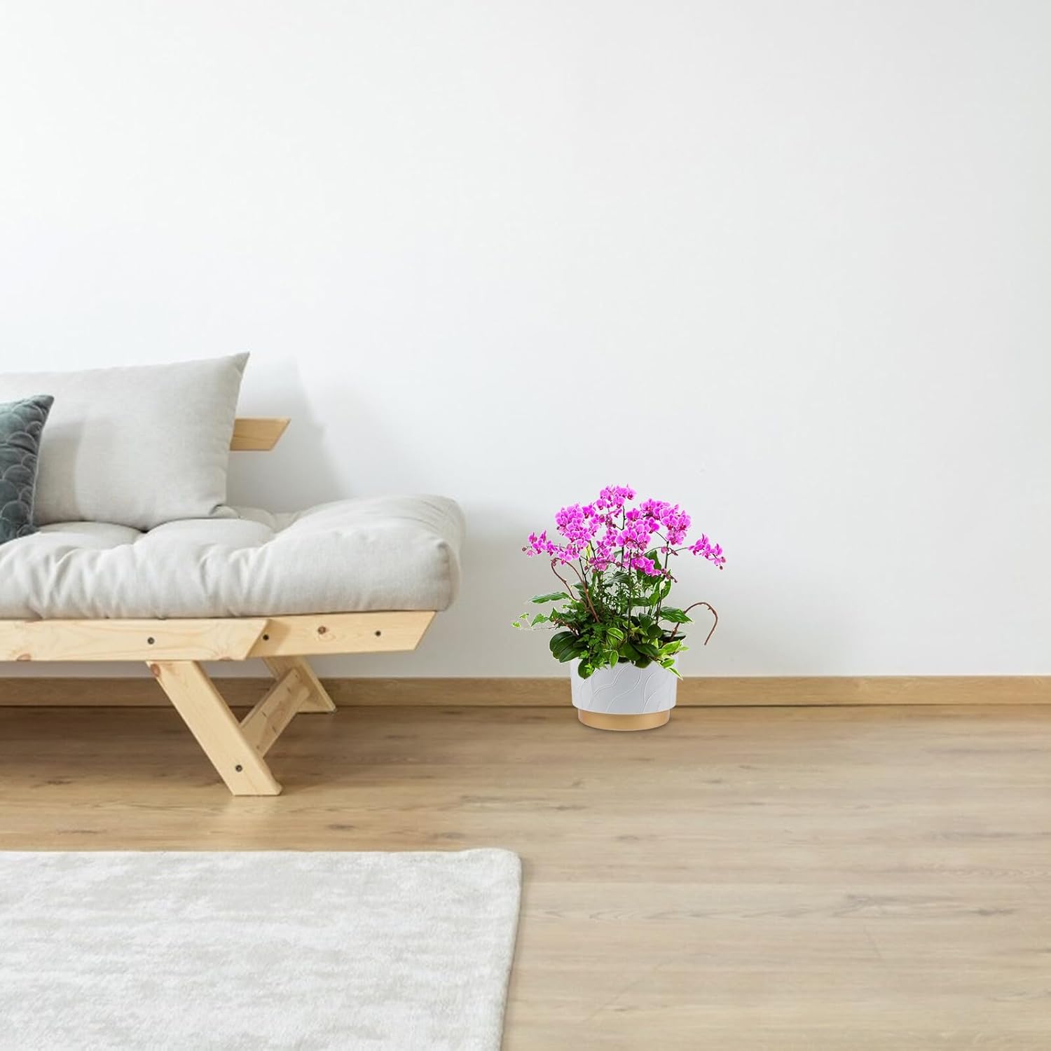 Package Include 1 x Flower Pot Features -Vertical stripe pattern: creates a visually appealing texture, reflecting a sophisticated nordic design that enhances room aesthetics garden pots -Large opening design: accommodates large plant roots, healthy growth and enhancing indoor greenery nursery pots -Color:White -Durable and easy to clean: made from materials that resist breakage and are easy to maintain, ensuring beauty -Elegant finish: provides a luxurious and attractive look, for adding an artistic touch to your home decor orchid nursery pot -Size:34.50X34.50X20.00cm/13.56X13.56X7.86in -Product Info: Phalaenopsis orchid pot -Material:Plastic -Versatile modern design: complements a wide range of interior styles, adding a refreshing and natural element to your home orchid nutrient holdersGoods Informationplanter nursery pots Designed to meet the needs of orchid enthusiasts, this planter combines functionality and style.drainage flower planters It supports healthy root development, prevents overwatering, and adds a touch of elegance to any space.plant nutrient holders Whether for home decoration or professional gardening, it fulfills the desire for beauty and practicality in plant care