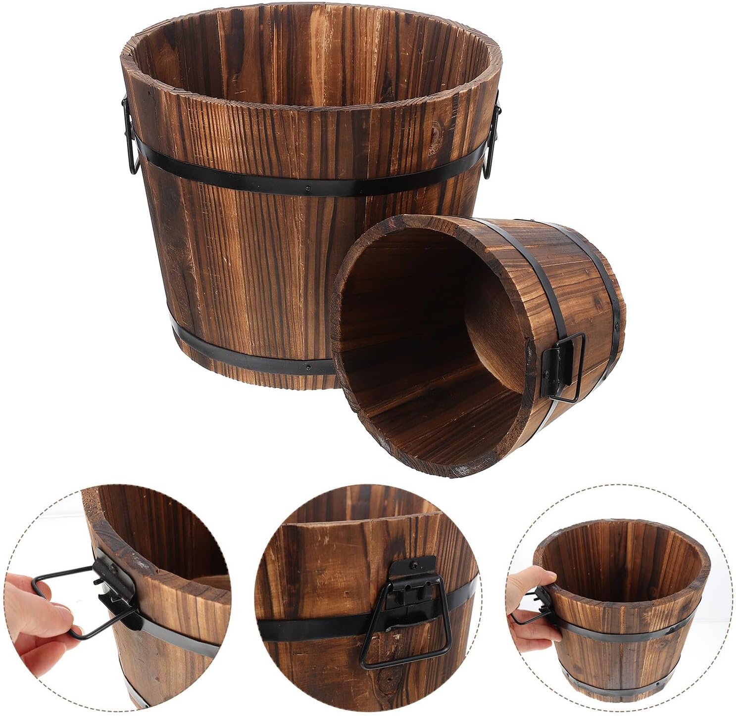 Package Include 1 x Flat Open Pot 1 x Bottom with Hole Pot Features - Bottom with Hole Pot Size: About 30x23x24cm/11.81x9.06x9.45in - Material: Wood -Product Info:Anti-rotten flower bons - Flat Open Pot Size: About 18.50X14.50X15.00cm/7.27X5.70X5.89in - It has a wide range of uses, it can be used for planting succulent or as decorative ornament succulent planter. - It's a great to your friends who like planting, or use it to decorate your room wood pots for plants. - It can be planting succulents, , cacti, basil, , wheatgrass and other small plants wood flowerpot. - ColorAssorted Color - This vintage style bucket is made from premium wood, rustic wood bucket flower pots. - Good decoration for home, dorm, café, shop, store or office rustic flower pots.Goods Informationwood flowerpot Old treatment on the surface fully reflects the retro style.succulent planter The decorative wooden bucket is made of and is simple in structure.flower pot You can use the vintage style wooden bucket to plant your deeply cared flowers or succulent plants