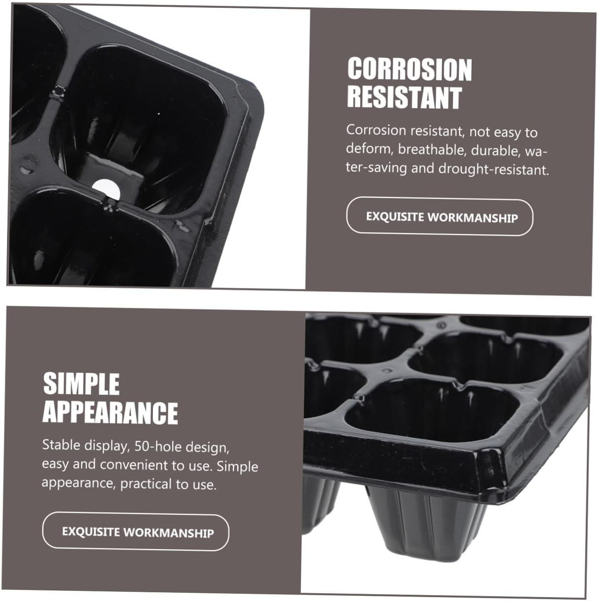 Package Include 10 x Germination Trays Characteristics -Size: About 54.00X28.00X5.00cm/21.22X11.00X1.97inch Plastic Planter. -Material: PP Starter Tray. -Color: Black Germination Plates. - plastic material, strong and , not easy to deformation Pot. - This nursery plate is home gardening nursery and novice use Vegetable Planting Tray. - Allowing your small plants, vegetables and flower to germinate in a warm environment Plant Germination Boxes. - Cost- , you can buy this delicate and plant starter plate at Plant Germination Tray. - 50-holes allow you to grow different types of plants in one tray and fix the pellet in place without failing Garden Planting Tool.Goods InformationPot Made of plastic material, this nursery plant tray is lightweight and wear resistant.Greenhouse Planting Tray It is especially great for growing small crops of like as sprouts, grass, , etc.Planting Container One box has 50 individual holes, very convenient