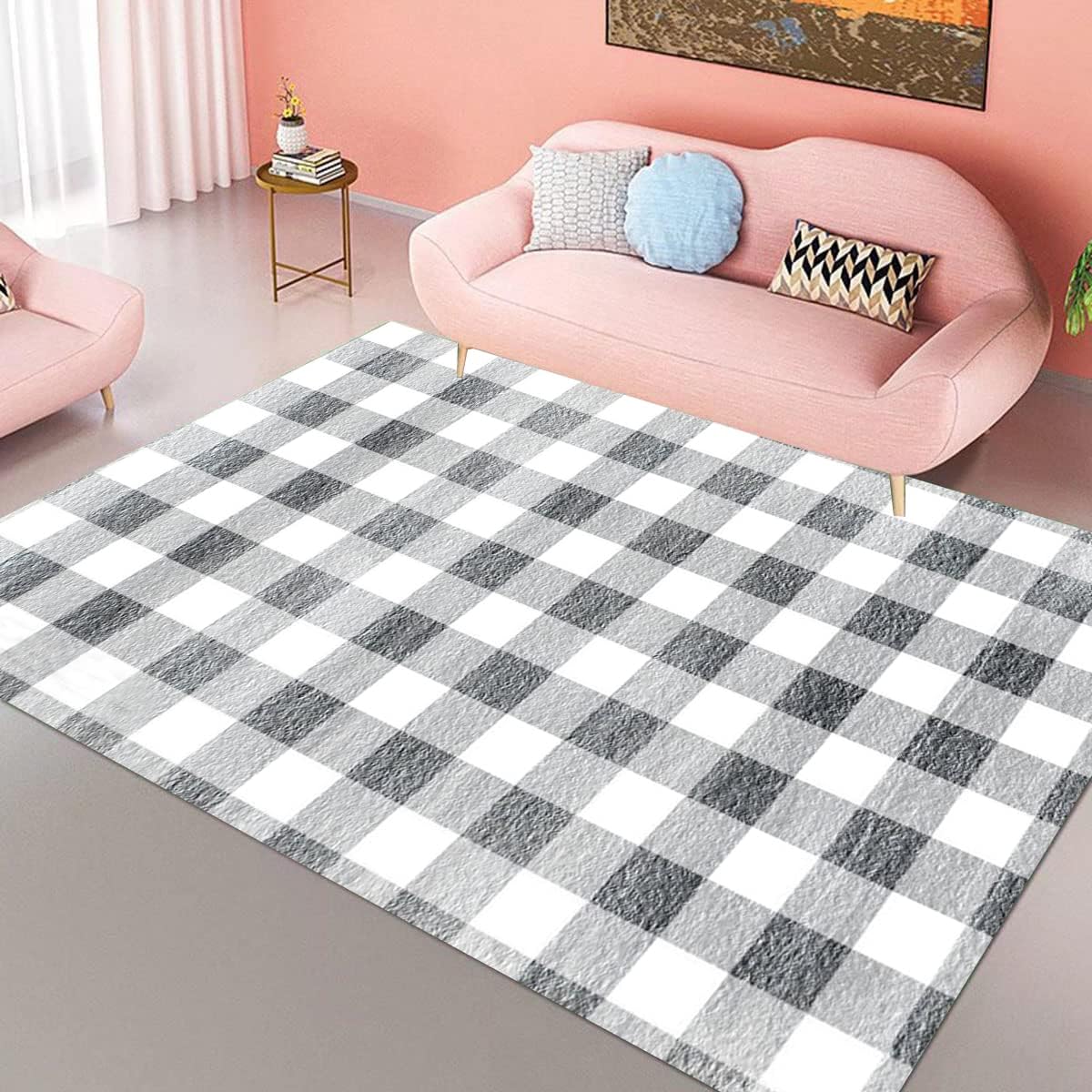 Modern Buffalo Plaid Checkered Area Rugs for Livingroom Bedroom Guestroom,Non-Shedding Shaggy Floorcovers Carpets Modern Abstract Pattern Rugs under Office Coffee Table,Indoor Washable Runner Rugs,Lux Home Decore Modern Art Rugs for Diningroom Playroom,Contemporay Bedroom Accent Mat.