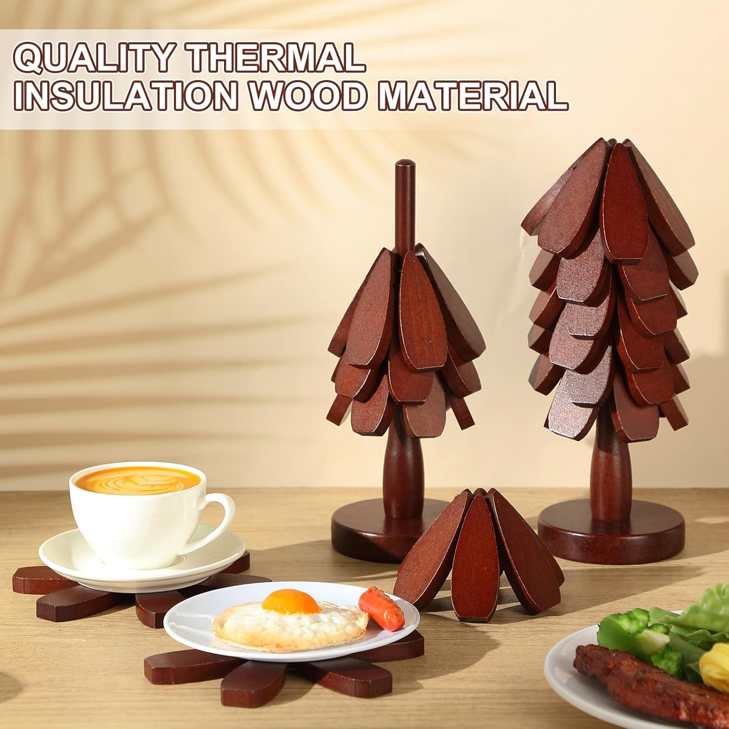 Features: Easy to use: These kitchen wooden tree trivets are easy to use and take up little space, ideal for storing on the kitchen counter, dining table, living room and so on. The wooden tree trivets for hot dishes are well crafted and can be easily cleaned with a simple wipe with a dry cloth. Practical home decor: Wood tree trivet set makes your kitchen look organized and enhances your home happiness. The tree design creates an atmosphere close to nature, an elegant accent for family dining table and home decoration. Specifications: Material: walnut wood Color: walnut color Size: Wood trivets: 6.5 x 6.5 x 0.4 inches Stand: 10 x 3.85 x 0.6 inches Package include: 2 x Wooden trivets set Notes: Manual measurement, please allow slight errors on size. The color may exist a slight difference due to different screen displays.