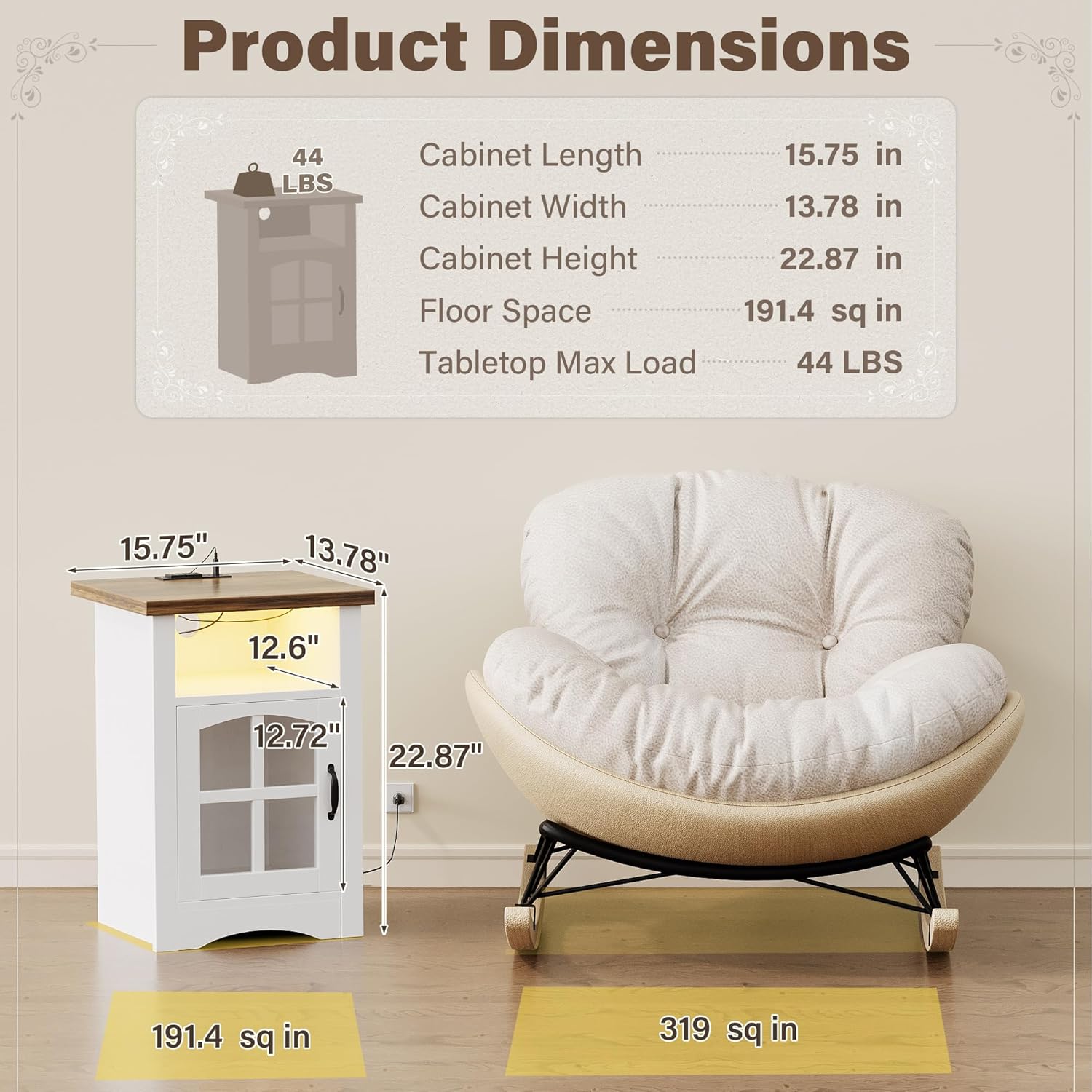 YESHOMY Farmhouse Nightstand, End Table with Charging Station, LED Night Stand for Bedroom with Open Storage Shelf and Glass Door, Bedroom Feature: Charging, LED Specification Color: Black/Brown/Light Oak & Brown/White & Brown Material: wood, etc Package includes: A nightstand/A nightstand set A manual of installation and usage Notice: There may be some differences between photos and items in term of color because the influence of lighting during the shooting or the settings of the computers’ display